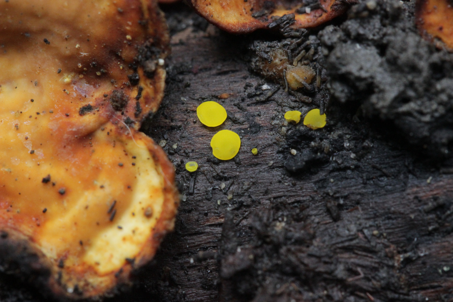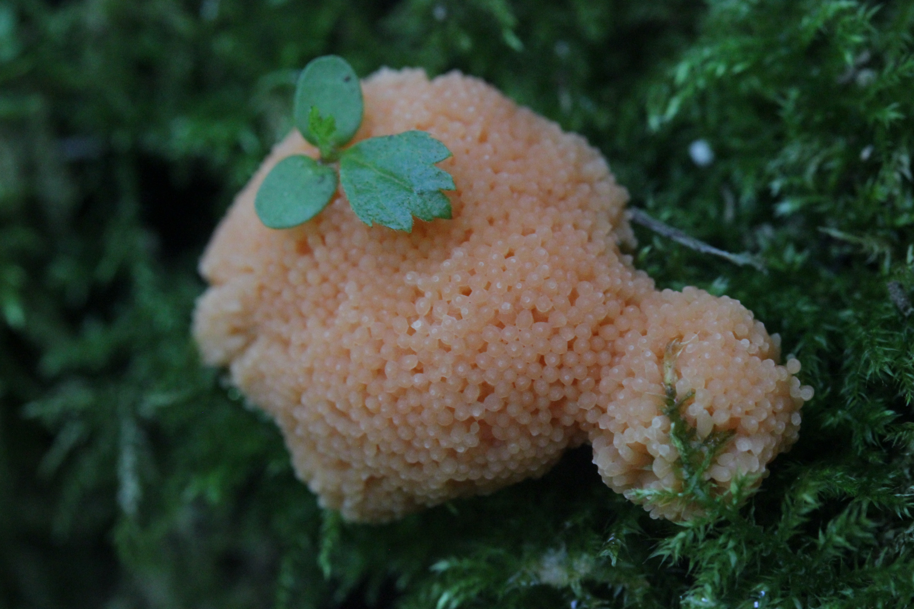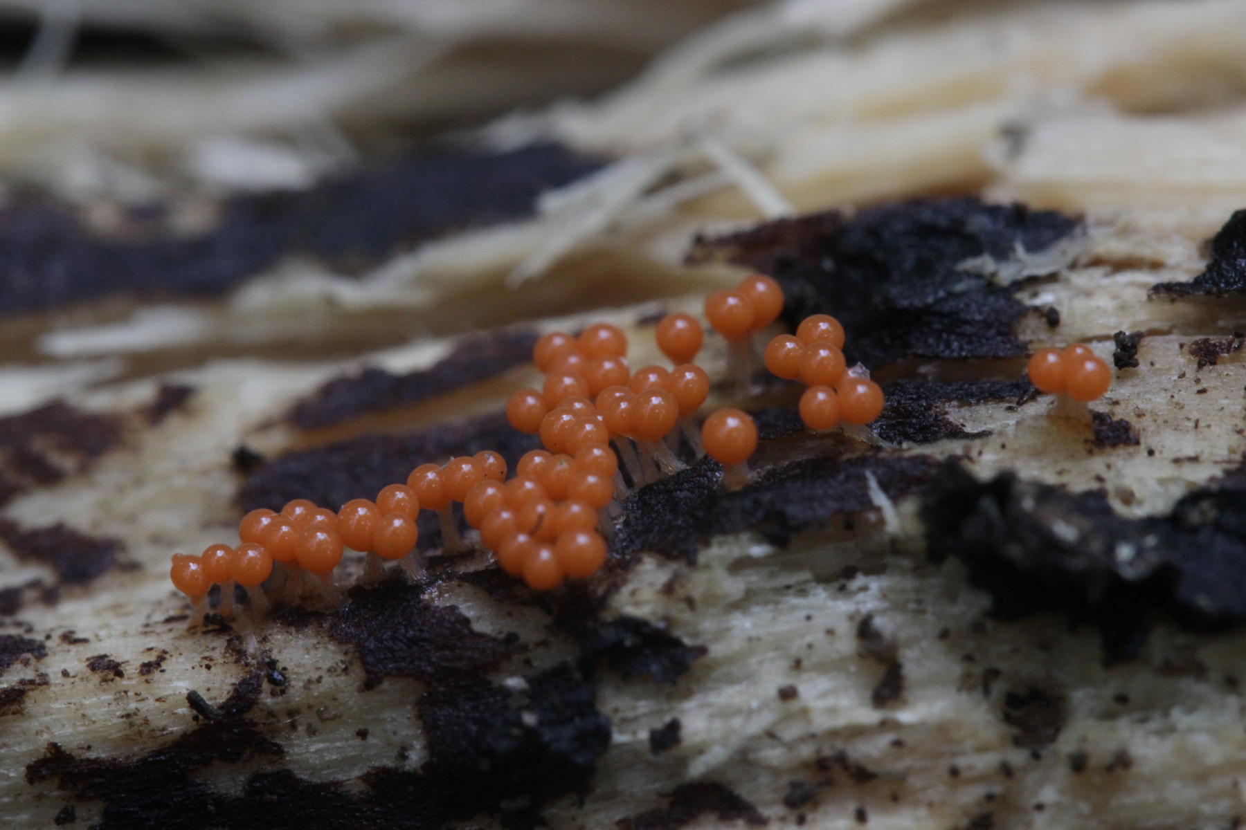 und Ceratiomyxa fruticulosa var. fruticulosa (gelbe Form)