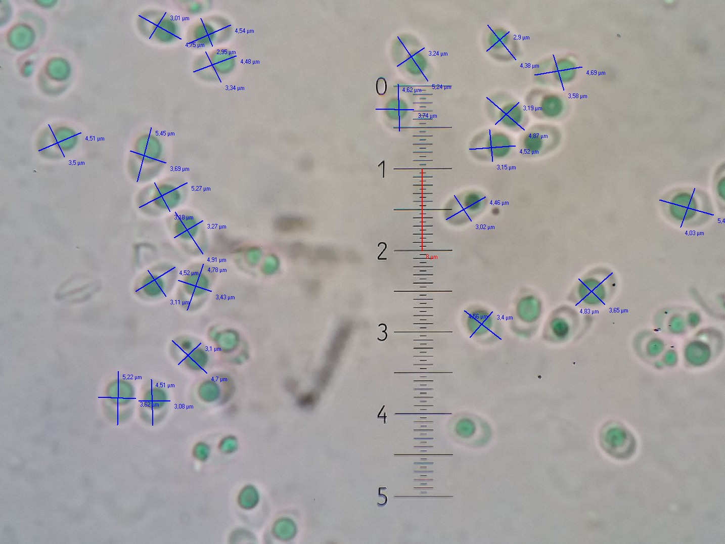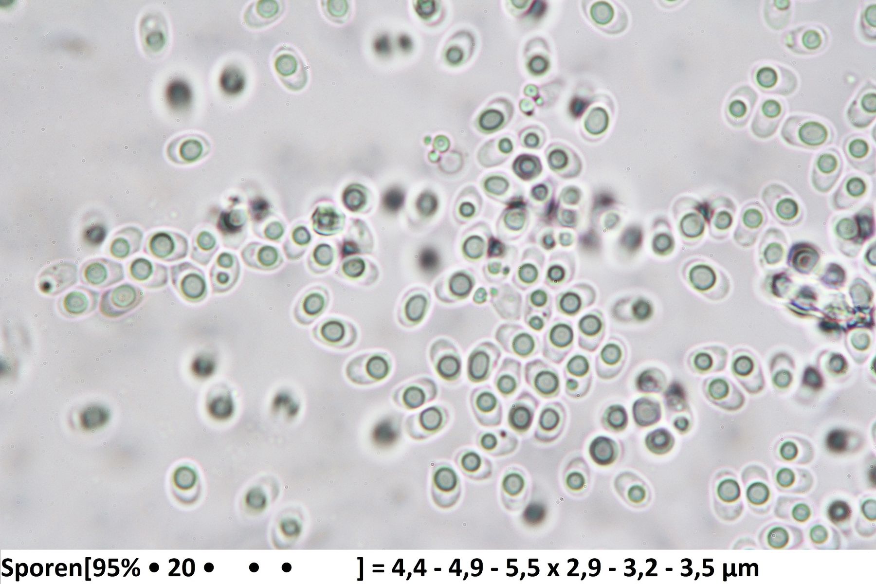 Sporen: 3,5-4,5 x 2,5-3,5 µm 4,5-5,5 x 3-4 µm 5-6,5 x 3,5-4,5 µm
