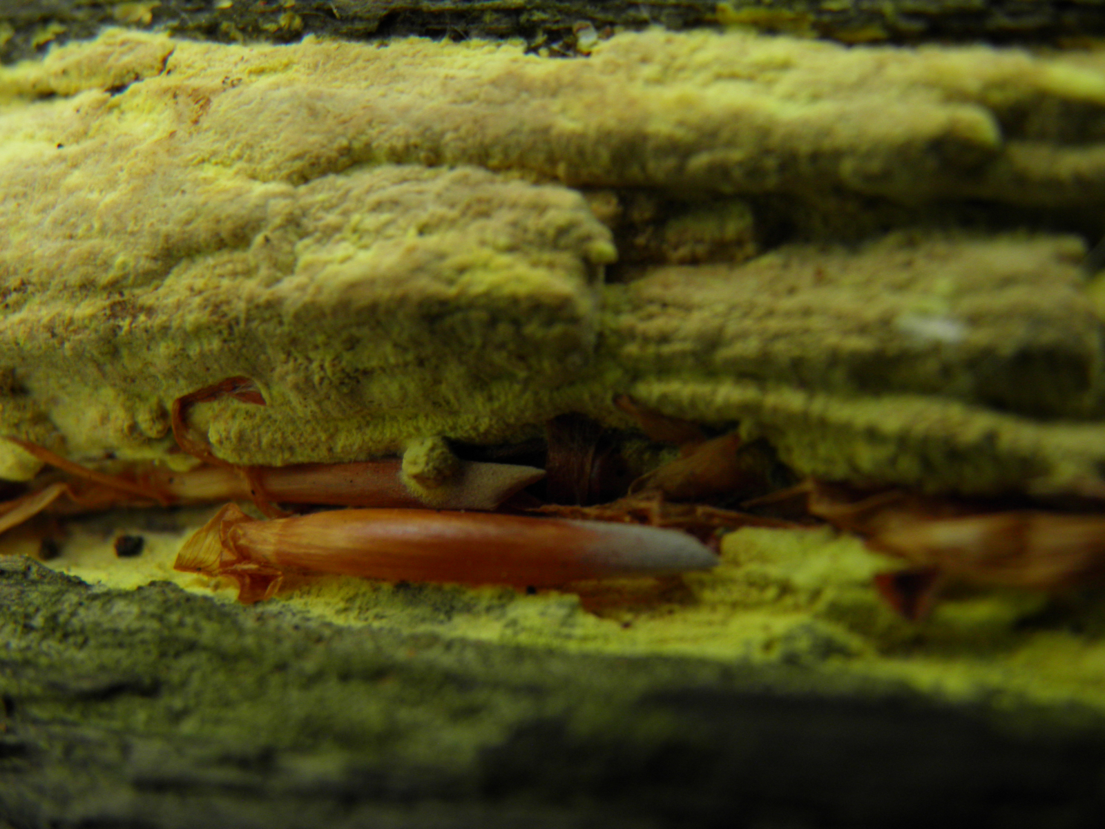 an morscher fichte ist mir heute dieser gelbliche/ockerfarbene belag aufgefallen.
