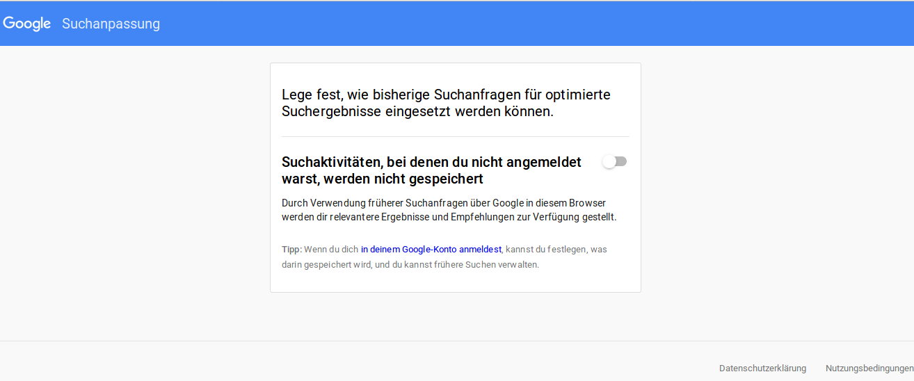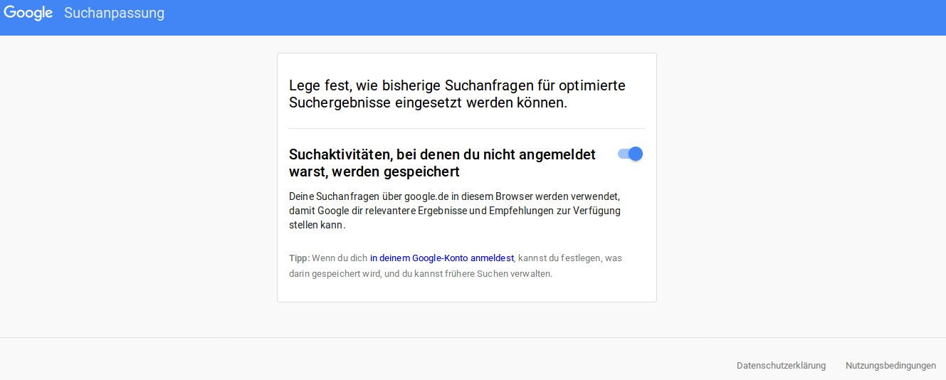 Die Angaben dazu, was Google dann auswerten darf oder nicht (z.B. die Suchhistorie) wird in einem Cookie gespeichert (falls man nicht bei Google angemeldet ist).