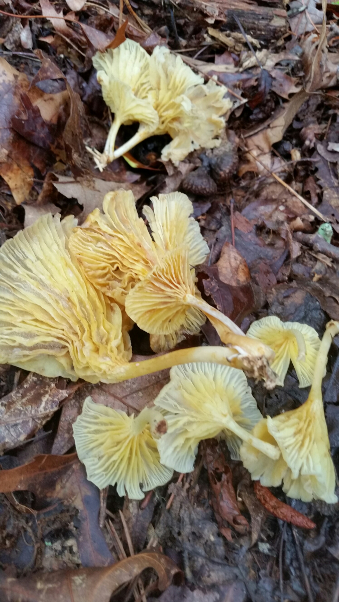 beim rechten denke ich an ein Nordamerikanisches Geschwisterchen von Chrysomphalina strombodes, bzw. Chrysomphalina chrysophylla. :)