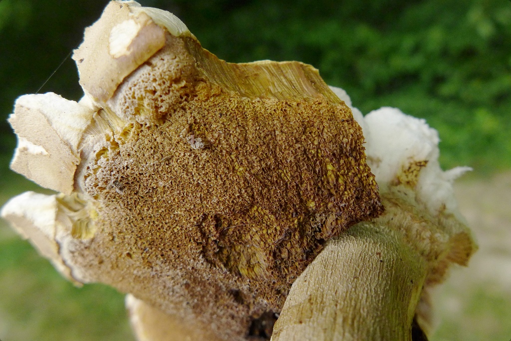 Röhrenboden gleichfarbig zum Hutfleisch, Röhren und Poren schon alt (irgendwie gelb-braun-rot-blau)