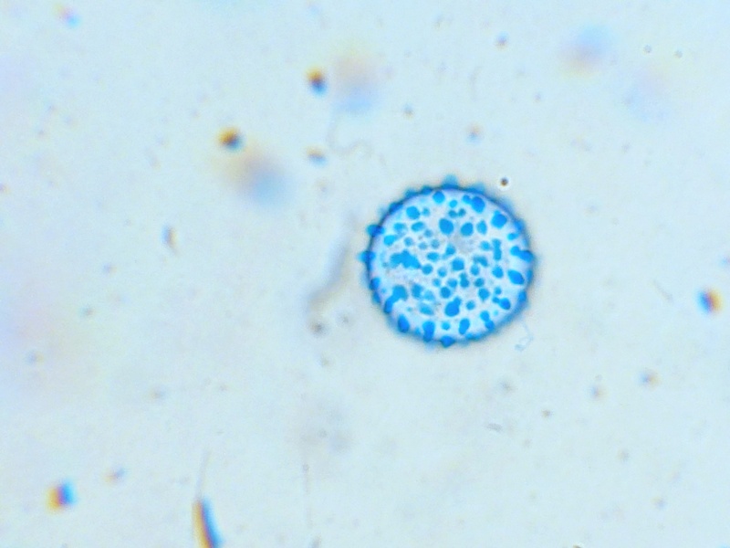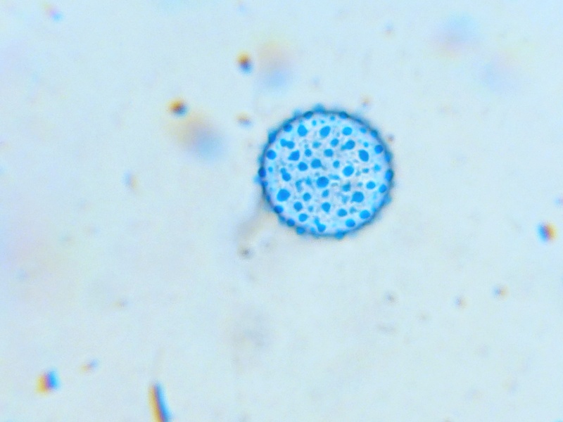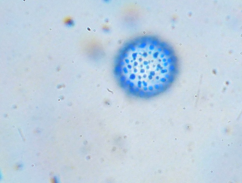 Sporenmessung in Wasser. Die Größe aller freien Sporen war in etwa identisch.