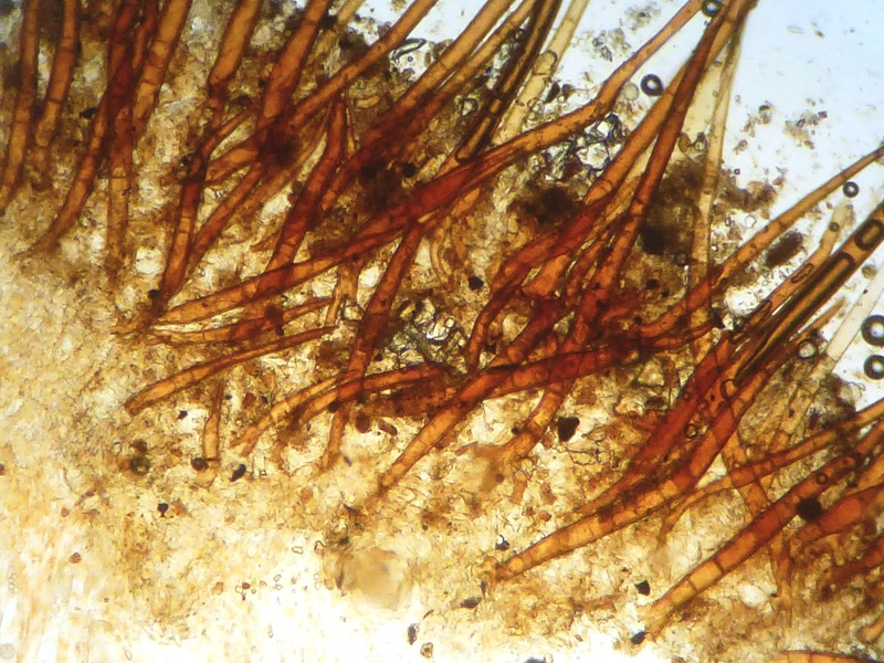 Die Haare waren, obwohl makroskopisch scheinbar deutlich länger, in etwa so lang wie bei der ersten Kollektion. Durch die unterschiedliche Größe der Fruchtkörper (Kollektion 1 um 1 cm, Kollektion 2 um 3-4 mm) und die unterschiedliche Krümmung der Becher entstand wohl der optische Größenunterschied.