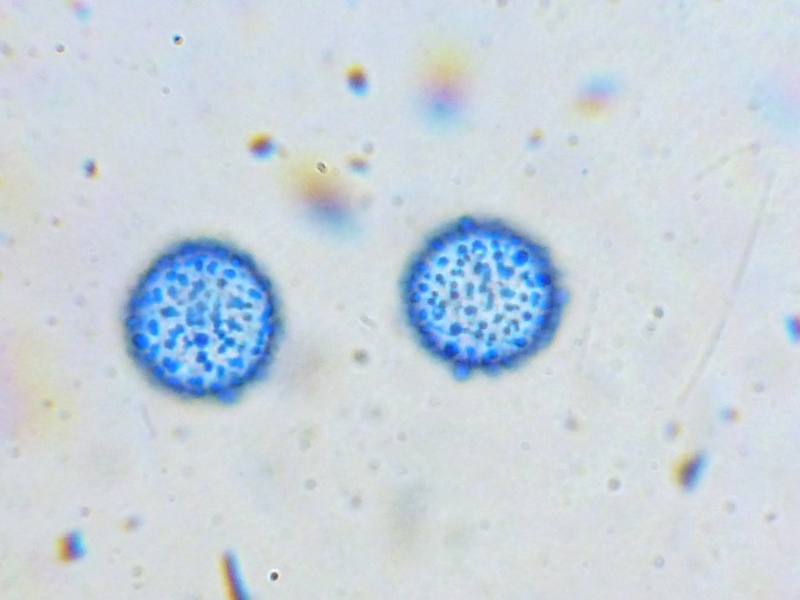 Die Sporen weisen recht deutliche Knollen auf, die z. T. verbunden zu sein scheinen