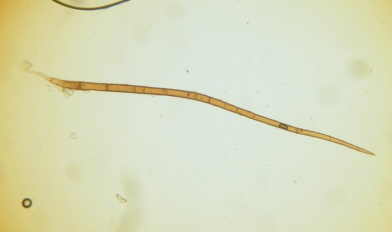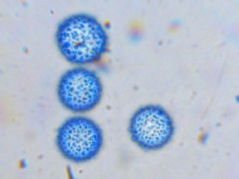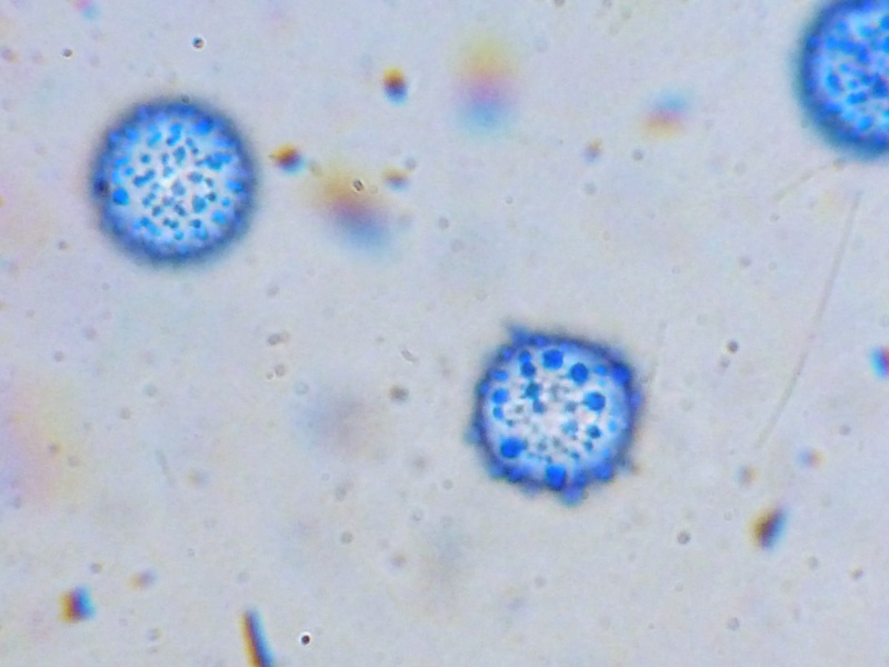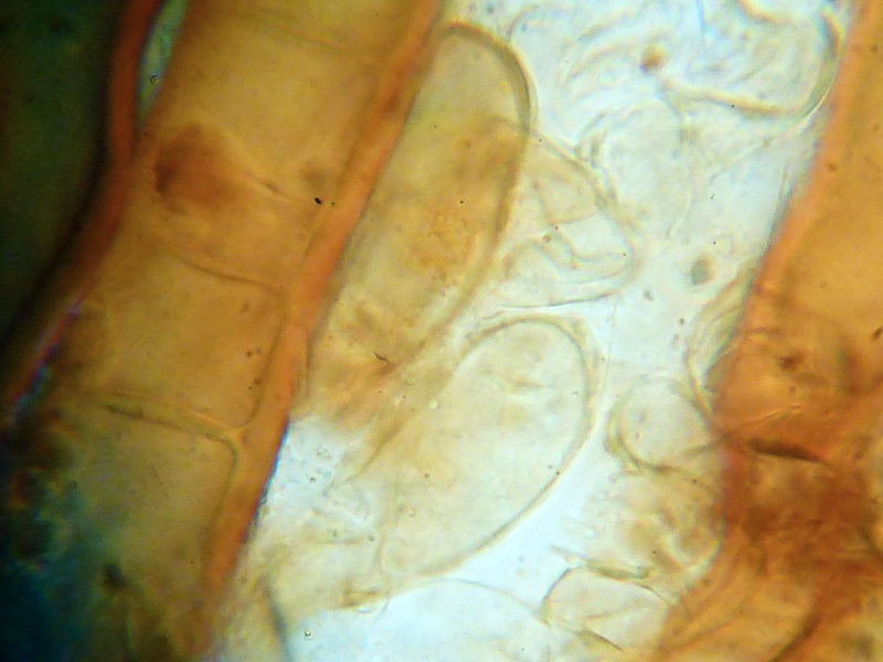 Ein Pluteus zum Schluss. Birnenförmige Elemente in Huthaut. Hut etwa 1,5 cm im Durchmesser. Cheilos rundlich ohne Schnippel. Irgendwie komme ich da zu keinem zufriedenstellenden Ergebnis, vor allem weil die Hutoberfläche nicht glatt, sondern fast umbrosus-artig flockig ist. Das passt aber zu keinem meiner Kandidaten. Hat jemand eine spontane Idee?