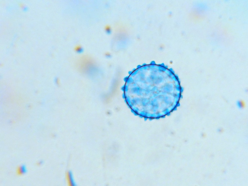 Sporenmessung in Wasser. Die Größe aller freien Sporen war in etwa identisch.