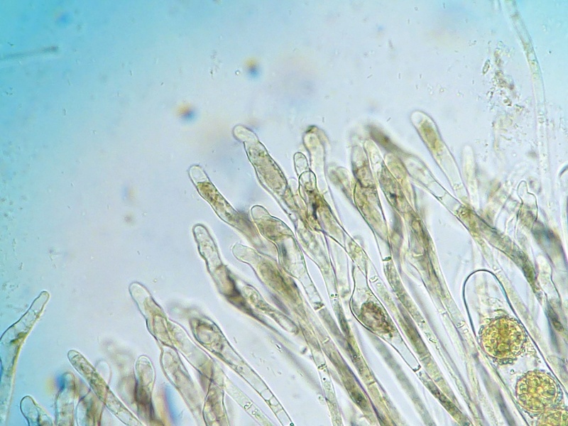 Leider gibt es von S.heterosphaera keine umfassende Beschreibung. Ich hatte seinerzeit eine Probe zu Benat geschickt, der die "Art" bestätigt hat. Dieser Fund ist daher "meine" Typuskollektion. So gibt es auch keine Beschreibung der Paraphysen. Bisher zeigten jedoch alle meine als S.heterosphaera bestimmten Proben solche Paraphysen. So ausgeprägt habe ich das bei anderen Rundsporern nicht feststellen können. Dennoch sind sie als weiches Merkmal zu betrachten.