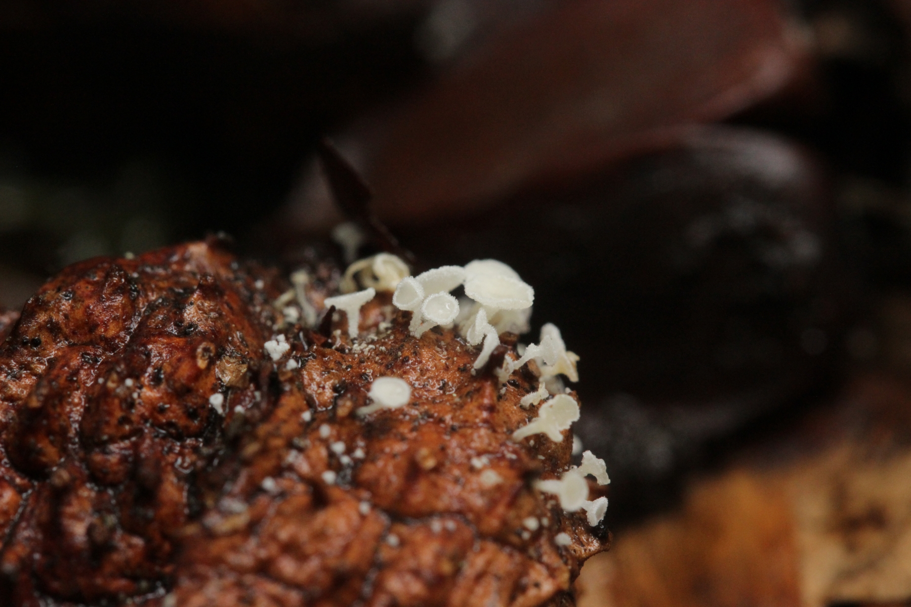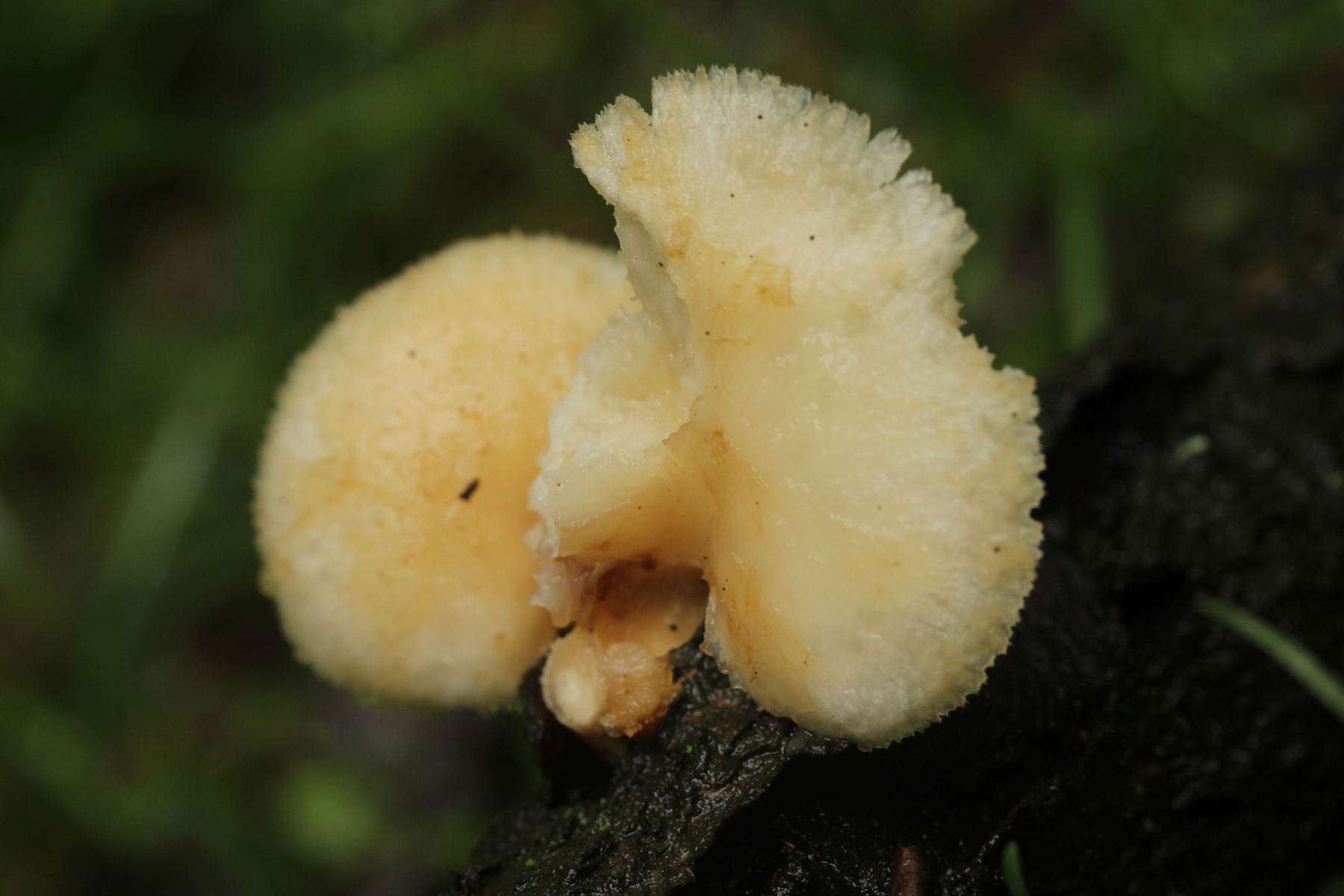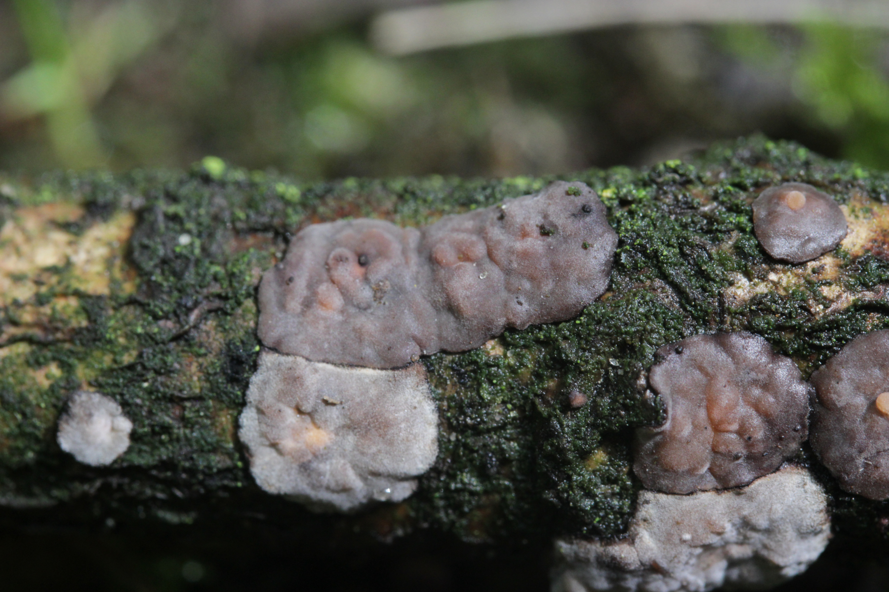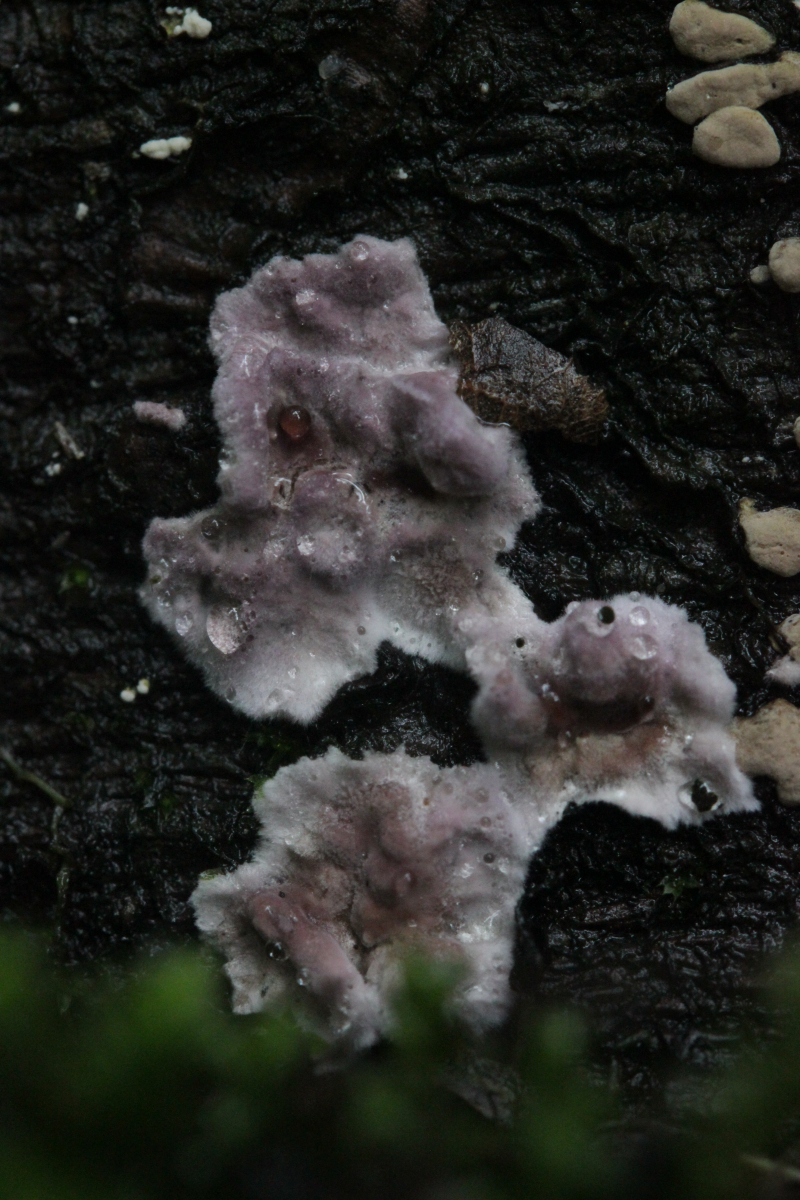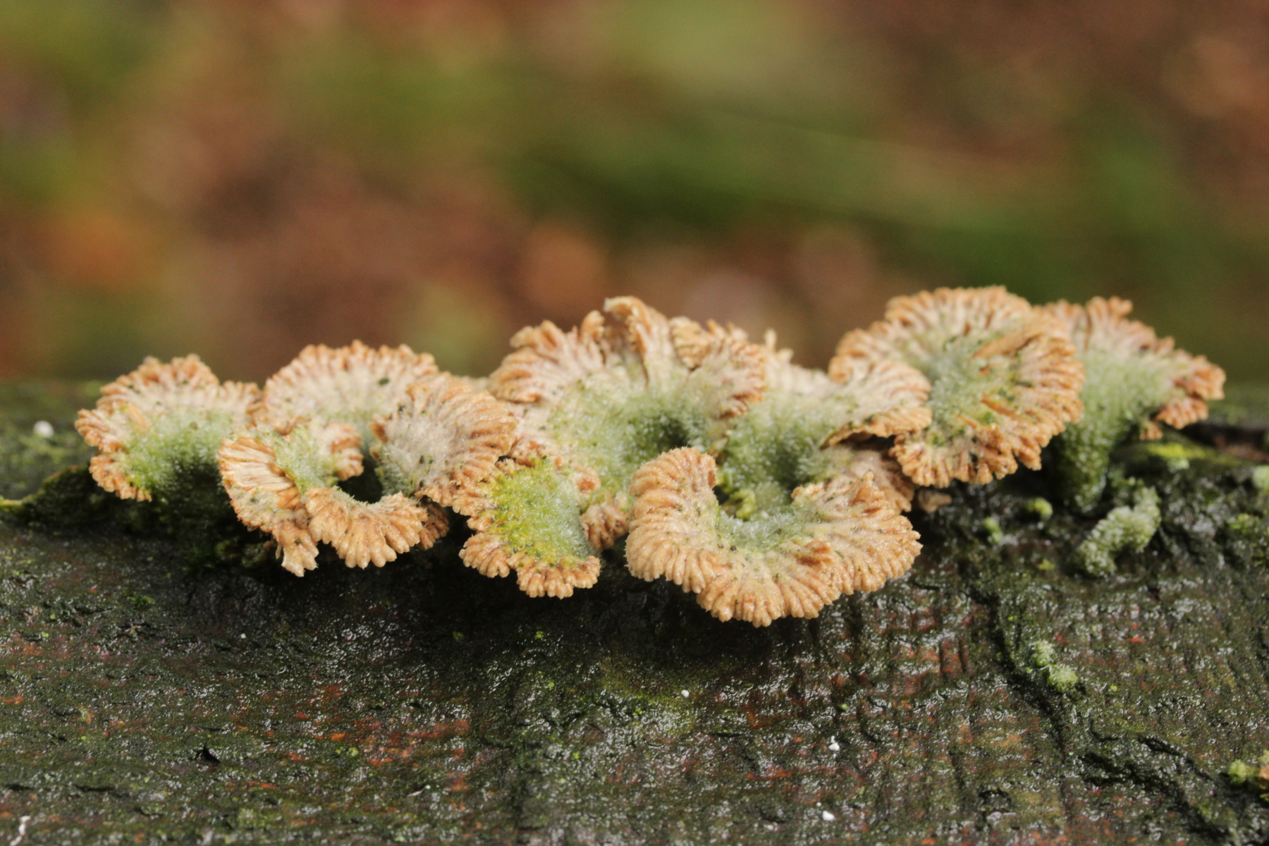 3. An einem Baumstumpf wuchs dieser kleine Geselle mit violettem Farbstich. Kann das Chondrostereum purpureum sein?