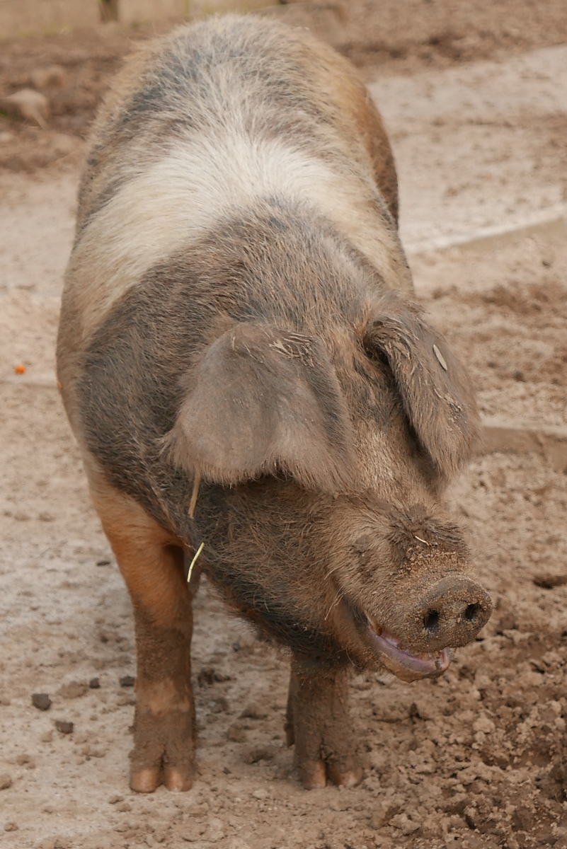 ... ich hatte ja noch Fotos von Jürgen versprochen, dem Protestschwein. Er steht in Schotten im Vogelpark mit zwei Kollegen. Ehrlich, ich weiß nicht, wen ich hier vor der Linse habe.
