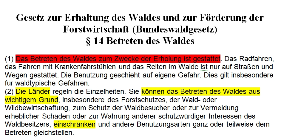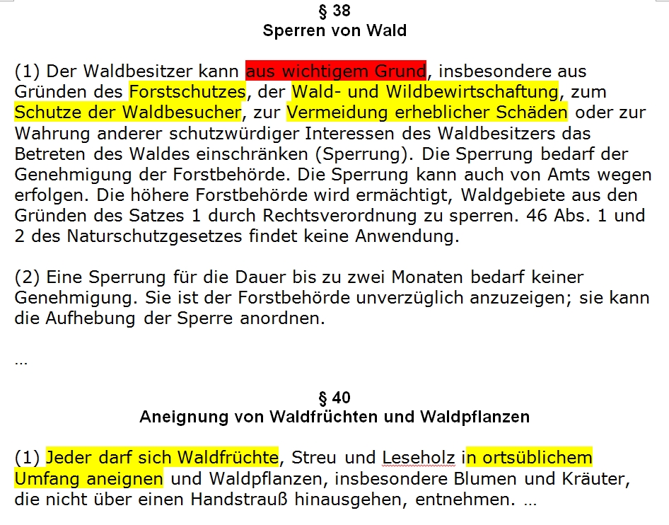 Zitat: "Paragraf 23 des Landeswaldgesetzes schreibt hierzu in seinen Absätzen 1 und 2: