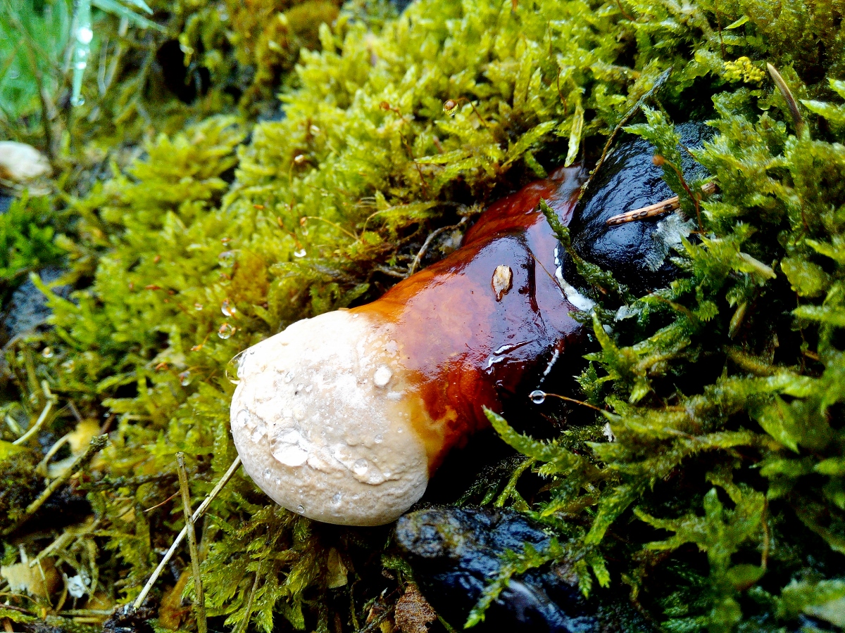 [font="Verdana"]Hier also den tropfnassen Glänzenden Lackporling, insgesamt habe ich acht junge Fruchtkörper und ein paar alte gezählt.[/font]