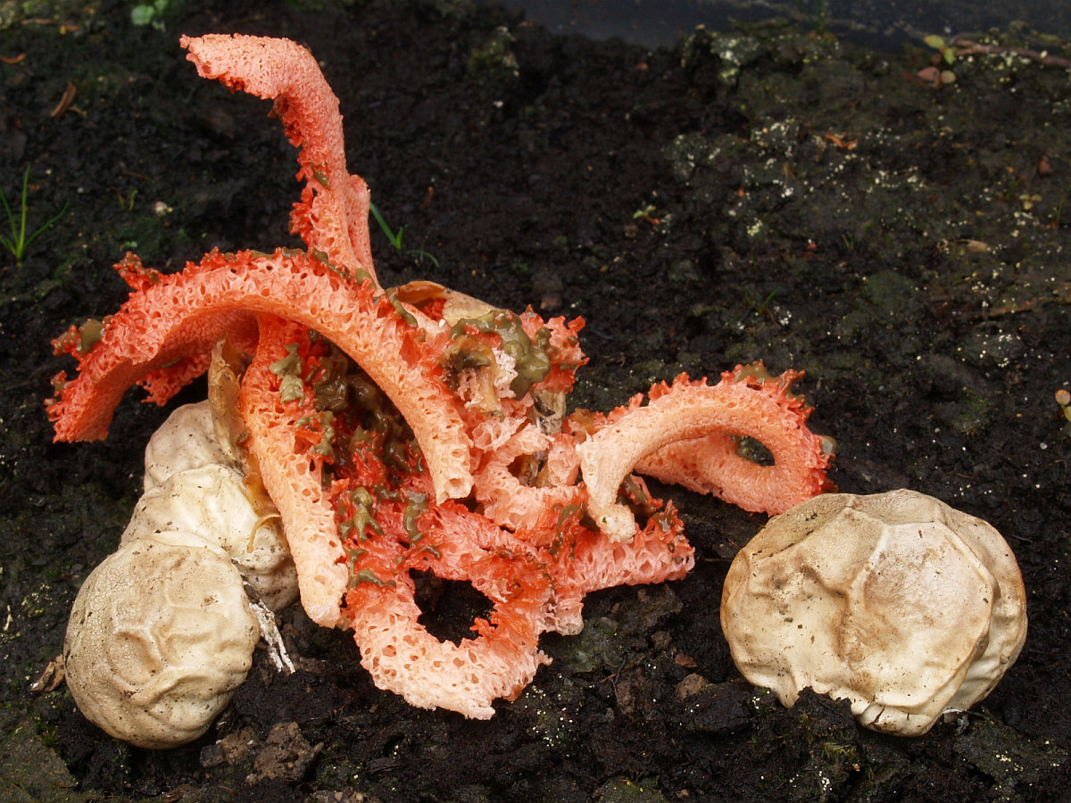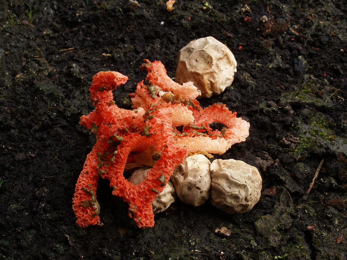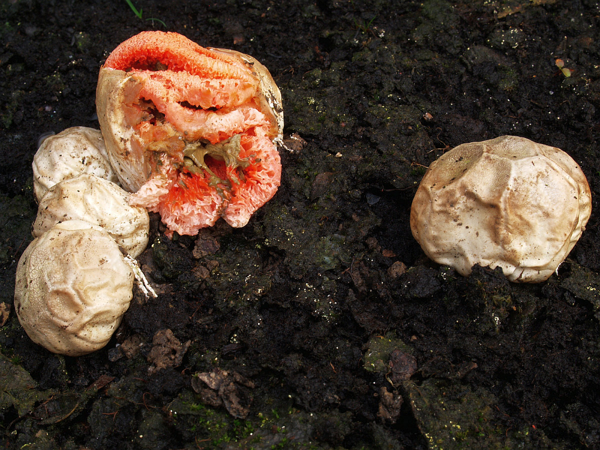 Die Zucht von Fruchtkörpern aus Hexeneiern funktioniert problemlos. Beim Entfernen des ersten Fruchtkörpers konnte ich sogar feststellen, dass das Myzel sich in der feuchten Erde deutlich weiter entwickelt hat. Nach einem halben Tag sah es schon wieder vielversprechend aus.