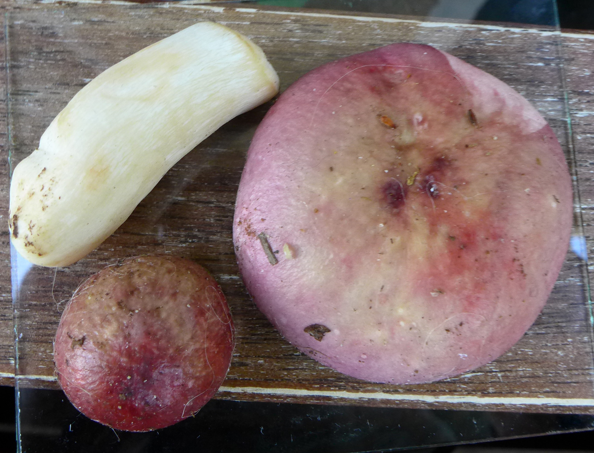 Huthaut wieder zur Hälfte abziehbar, Fleisch unter der Huthaut rötlich, Stiel eher gilbend als grauend. Nicht rot überlaufen, aber das ist wohl auch kein Muss?