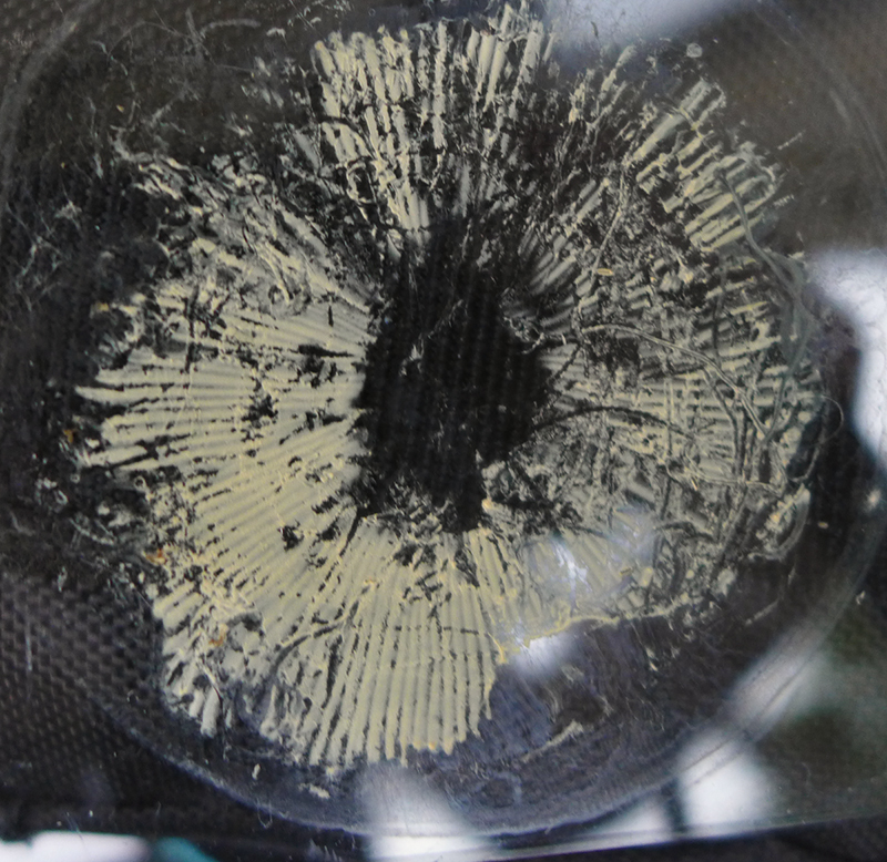 Dann haben wir bei Cratarelles Pilz noch die fein zentrifugal gerunzelte Hutoberfläche.