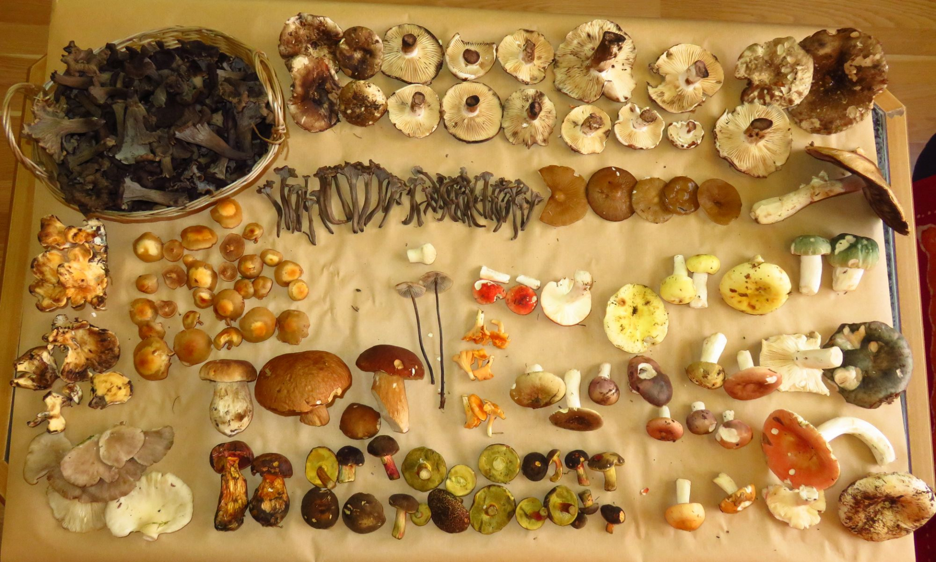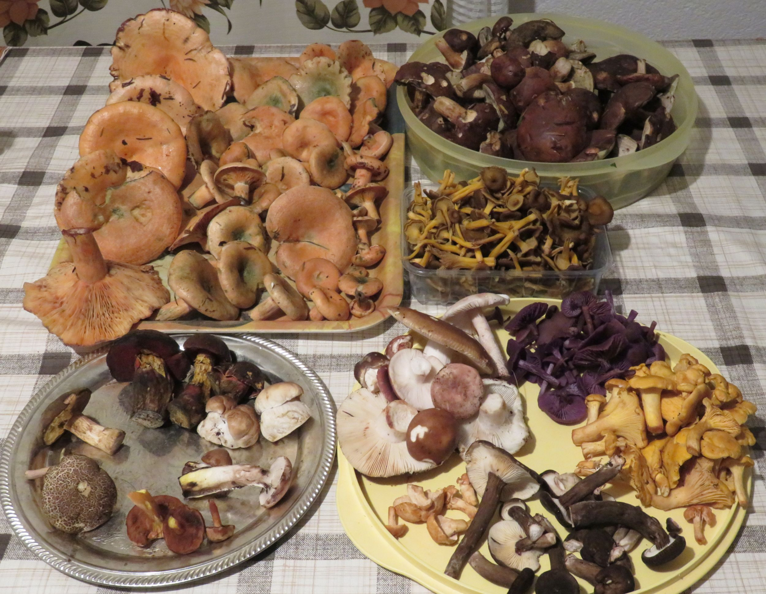 Neben den auf dem Foto zu sehenden Pfifferlingen, Flockis und Frauentäublingen, gab es im Wald noch Schönfußröhrlinge, Stinkmorcheln, Täublinge und ein paar wenige, unspektakuläre Pilze.