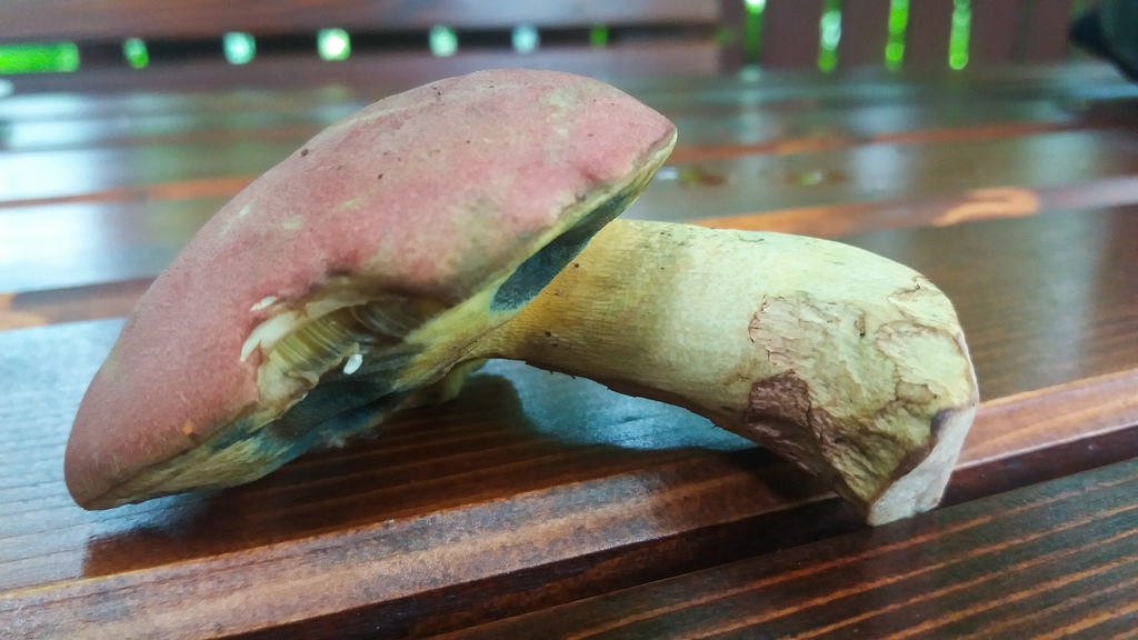 Das meine Frau gestern den noch selteneren Blauenden Königsröhrling finden konnte, hat uns sehr gefreut. Ob wir ihn hier geputzt und zu Speisezwecken vorbereitet auf die Bretter geknallt haben???