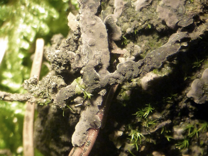 Es gibt schon auch ein paar (seltene) resupinate Thelephoras. Und eine resupiunate Form von Thelephora terrestris, die dafür auch recht häufig ist.