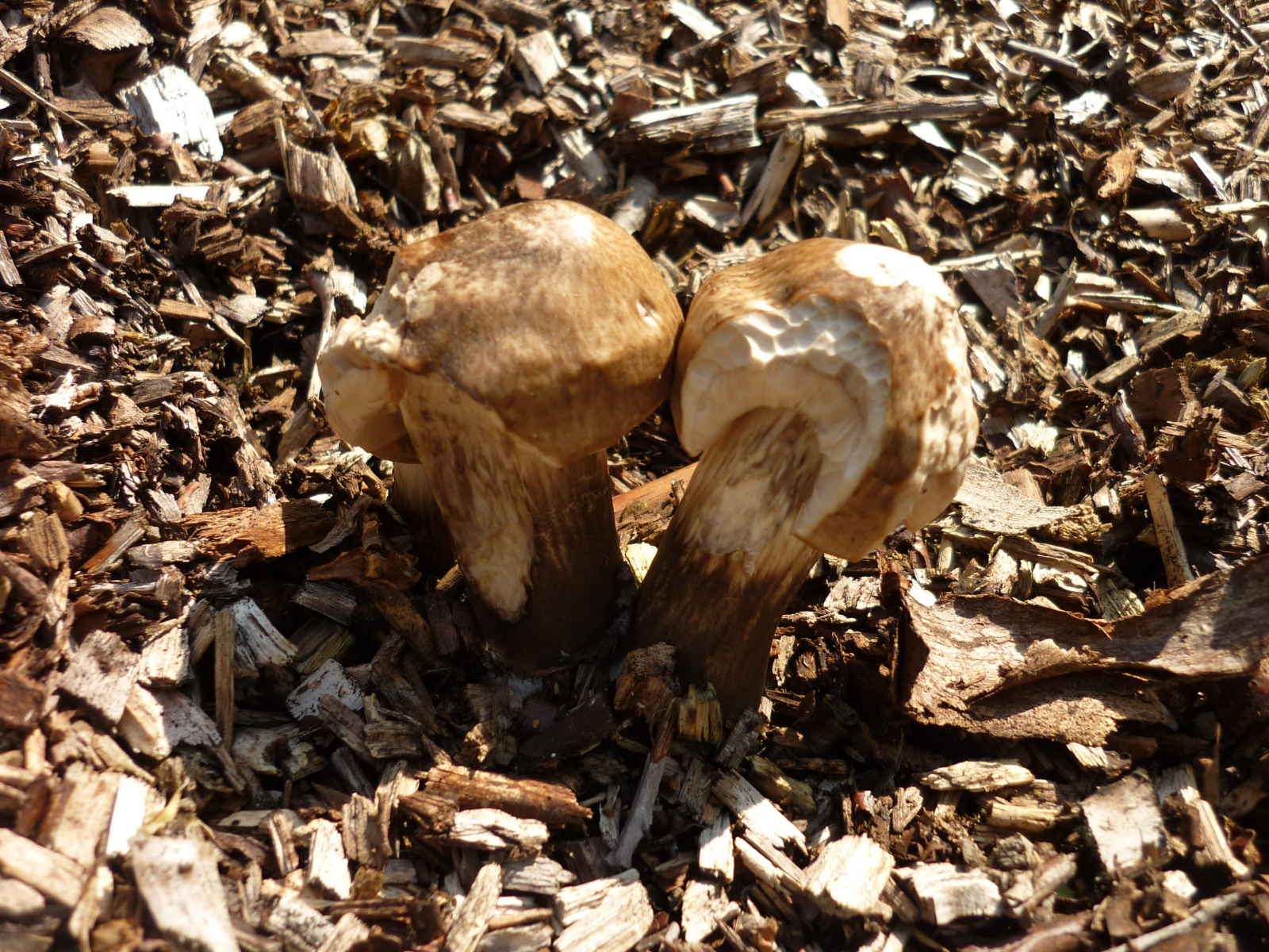beim Himbeeren sammeln in der prallen Südsonne auf Hackschnitzeln traf ich diesen hier. ca 12 cm hoch, Hüte noch nicht aufgespannt 6 cm Durchmesser. Geruch - nicht wirklich lecker, aber schwer zu beschreiben. Sehr festes Fleisch, fast wie Wieseltäubling. Fleisch nicht färbend.