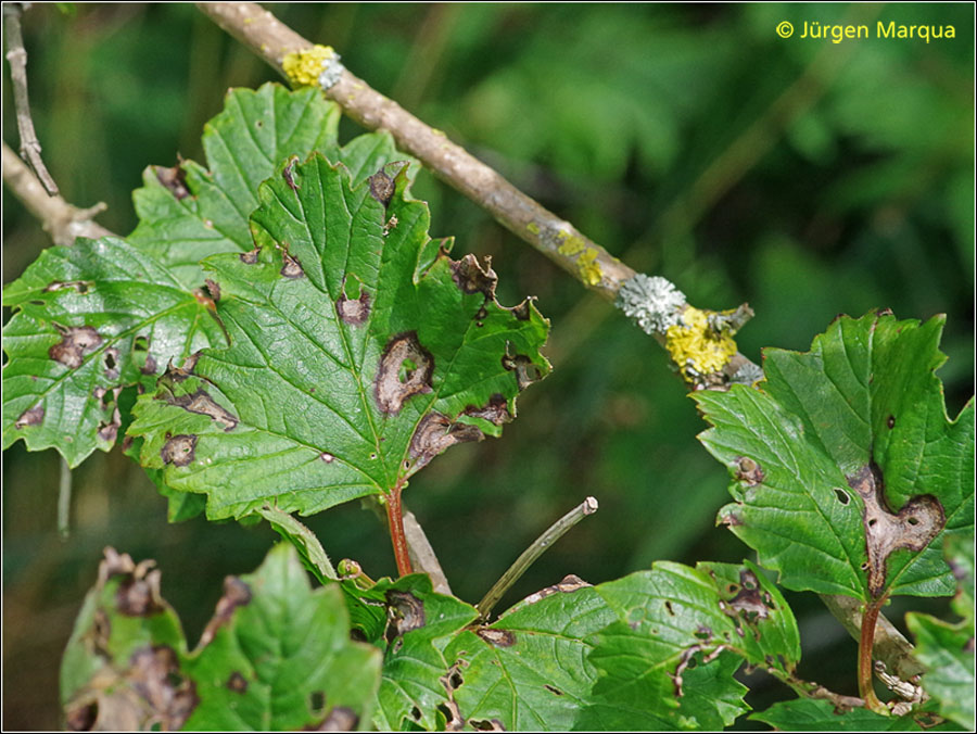 Hier mal ein Coelomycet an gewöhnlichem Schneeball, den man auch gerade finden kann: Boeremia exigua (früher Ascochyta viburni). Der Pilz kommt noch an sehr vielen anderen Pflanzen vor (z.B. an Tabak!).