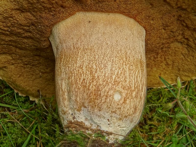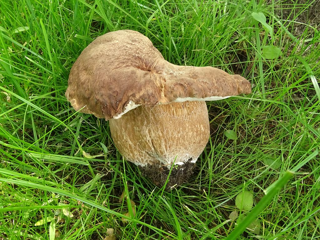 in meiner Straße. Der Stiel hatte die typische Netzzeichnung, die Poren erst weiß, später gelblich, das Fleisch