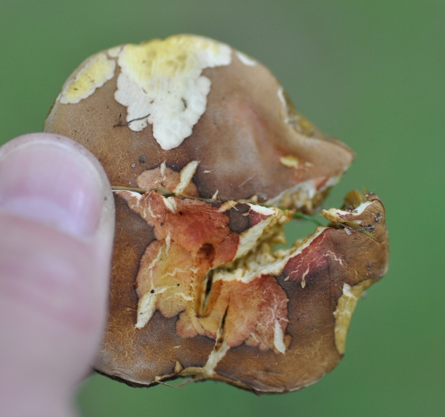 diesen Röhrling habe ich So den 23 Juli, an eine STIELEICHE gefunden.Der Pilz war ( ev. aufgrund der Trockenheit im Wachstum stagniert..) ins. ca. 8-10cm hoch, die Hutbreite betrug 4,5cm.
