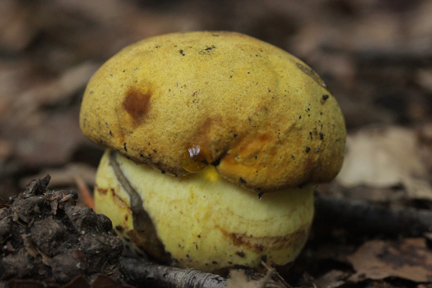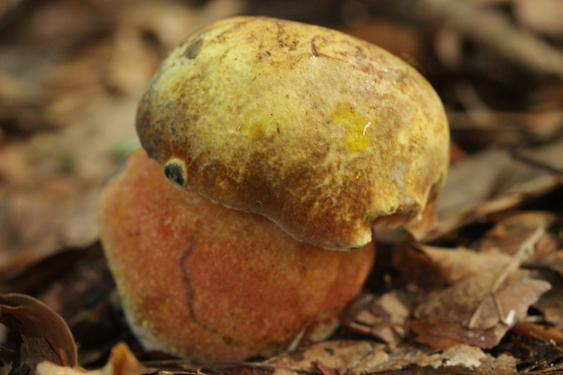 14. Das hatte ich im Wald erstmal an als Boletus junquilleus gedacht. Jan-Arne hatte auf Facebook dann Leccinellum crocipodium ins Spiel gebracht. Leider hatte ich den Pilz mit nach Hause genommen und dann direkt ins Risotto verarbeitet. Auf eine Verfärbung habe ich dann aber nicht bewußt geachtet, bzw. erinnere mich nicht konkret mehr dran.