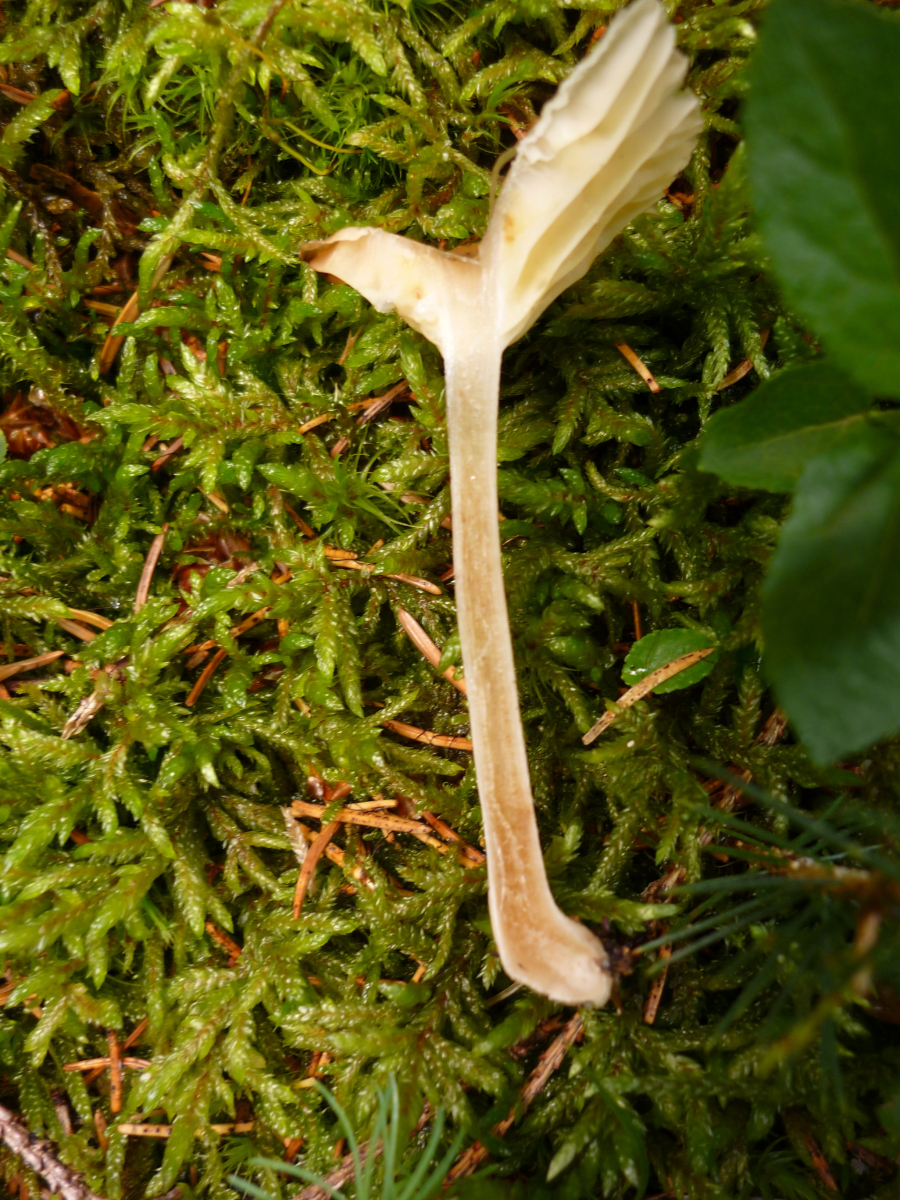1: Ein Trichterling, wenn er angenehm nach Bittermandel riecht, vermutlich der Kerbrandige (Clitocybe costata)