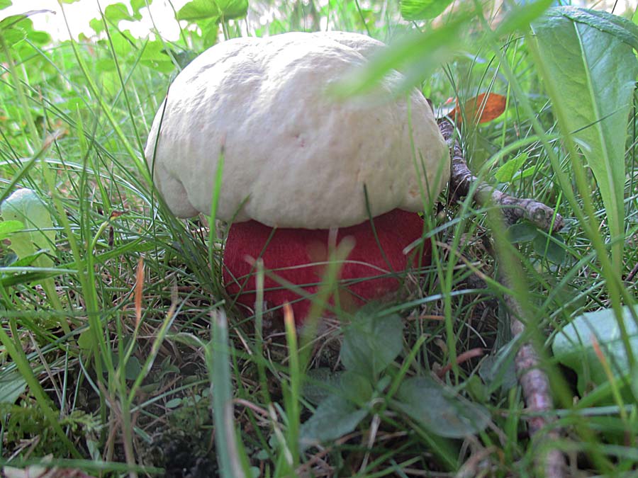 wegen des ungenetzten Stiels, der so dick ist wie der Hut breit (und der zudem noch die Farbe des Pavianhinterns hat), entscheide ich mich für den seltenen Satanspilz!