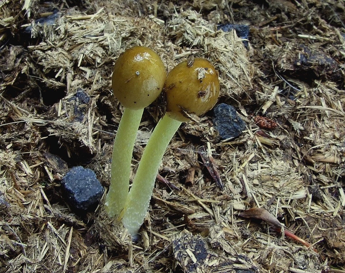 Vom Goldmistpilz gibt es eine Form mit dunklerem, olivbraunem und oft etwas runzligem Hut: Bolbitius titubans var. variicolor, die von manchen Autoren auch als eigene Art angesehen wird. Ich denke, daß ist es, was ihr da gefunden habt.