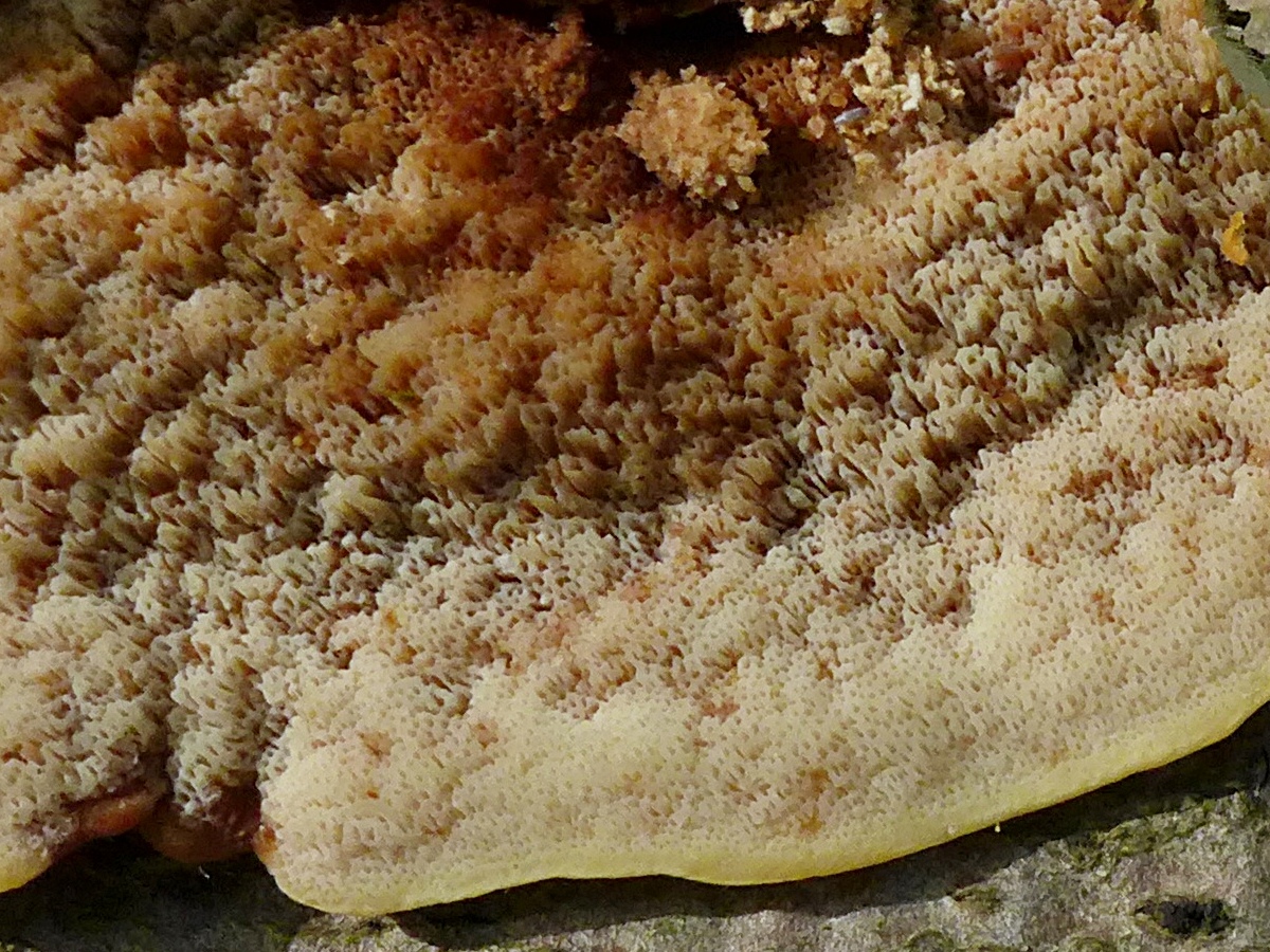 - Poren fein, ca. 3-4 pro mm, bei älteren Pilze labyrinthisch werdend