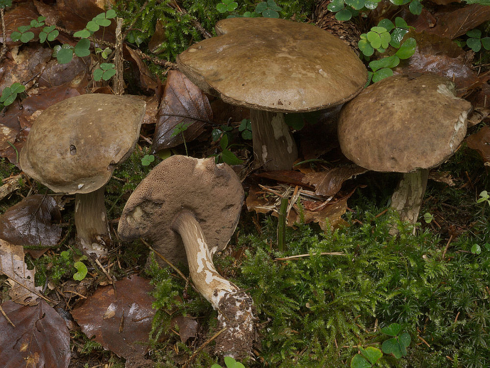 An einem Wegrand fanden sich schöne Exemplare des Düsteren- oder auch Porphyrröhrlings (Porphyrellus porphyrosporus)