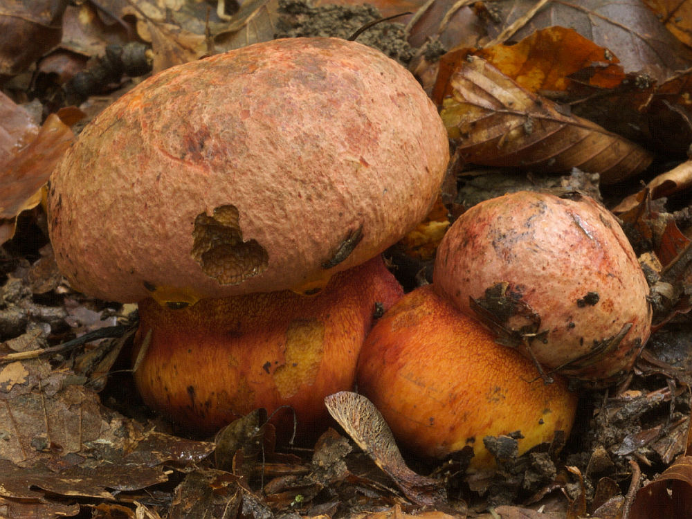 In einem 2014 entdeckten Bereich mit sechs Myzelien wurden wir gleich dreimal fündig. Sehr junge Exemplare dieses prächtigen Röhrlings ziegen sich in deutlichen Rottönen und haben wenig mit dem deutschen Namen gemeinsam Gebhütiger Purpur-Röhrling (Imperator luteocupreus)