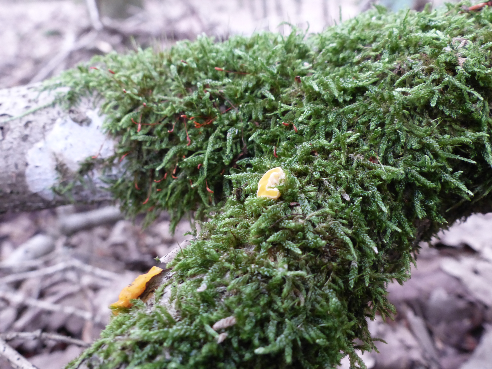 Kaum das Auto geparkt, sah ich schon die ersten goldgelben Zitterlinge. Leider sind die Bilder sehr unscharf geworden, aber als "Beweis" sollten sie eventuell gehen.