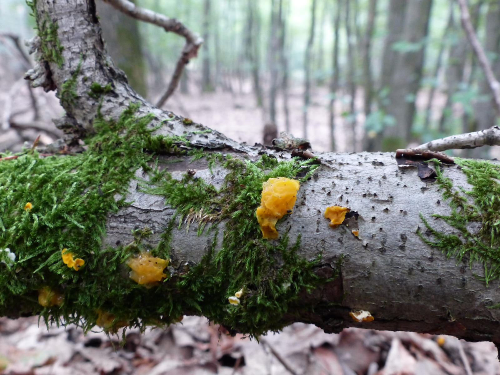 Kaum das Auto geparkt, sah ich schon die ersten goldgelben Zitterlinge. Leider sind die Bilder sehr unscharf geworden, aber als "Beweis" sollten sie eventuell gehen.