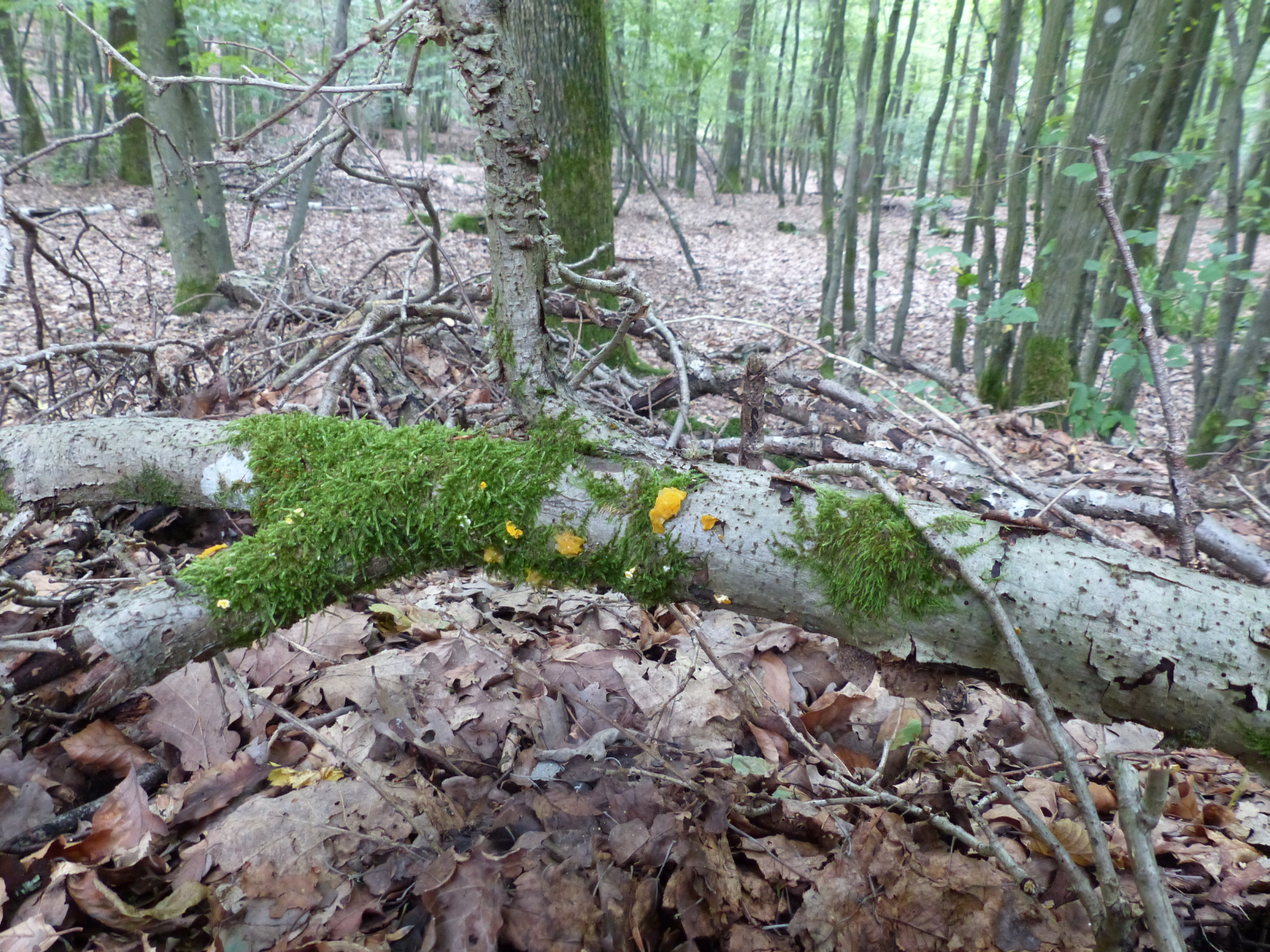 Kaum das Auto geparkt, sah ich schon die ersten goldgelben Zitterlinge. Leider sind die Bilder sehr unscharf geworden, aber als "Beweis" sollten sie eventuell gehen.