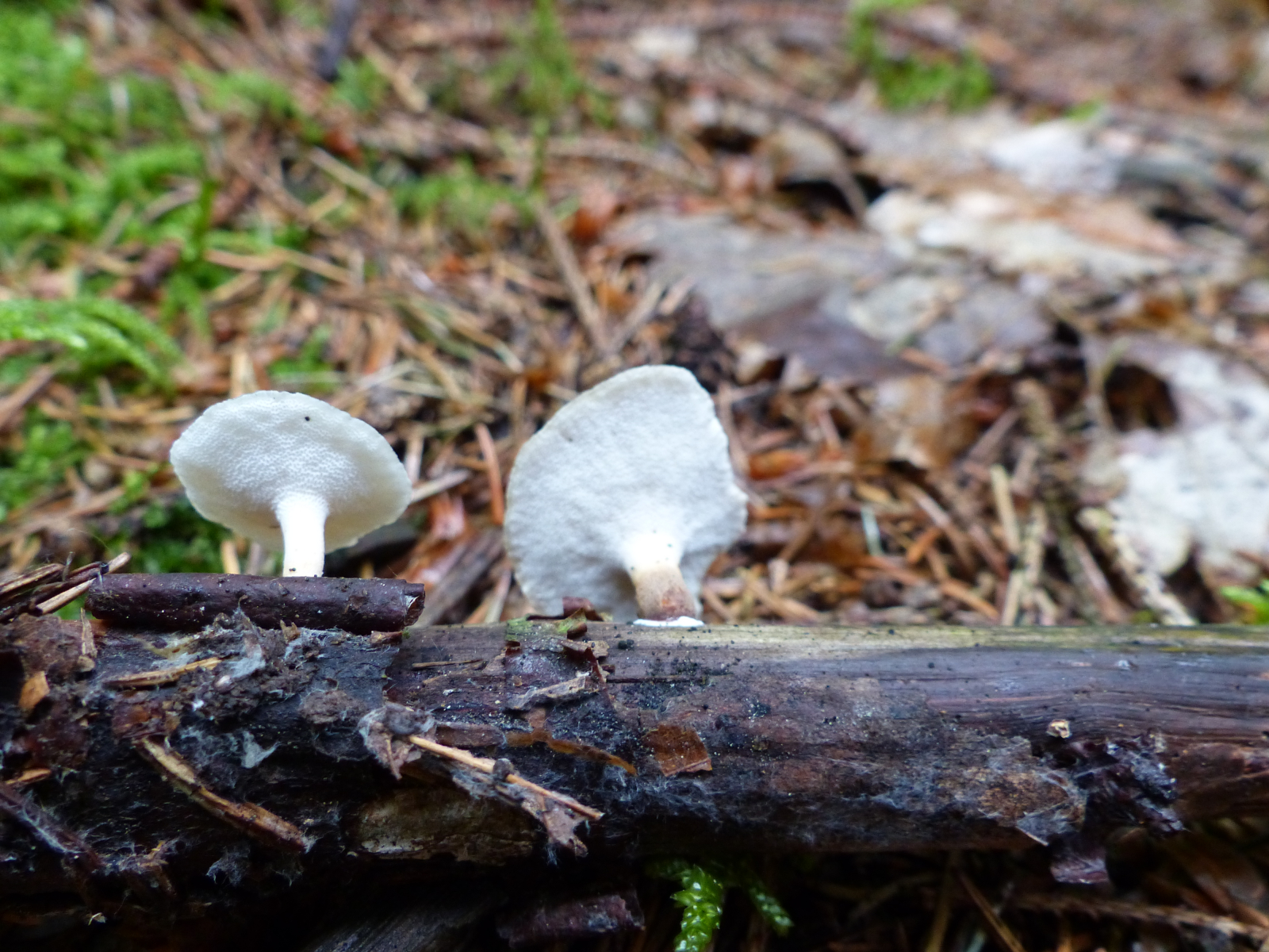 Ich vermute stark, daß Andreas da recht hat. Finde aber fast die Poren schon wieder zu grob dafür, nur fällt es halt auch schwer, die Größe der Fruchtkörper richtig einzuschätzen. Du hast die nicht zufällig mitgenommen und getrocknet? Dann könnte man noch etwas weiter spekulieren, vielleicht auch die Hutoberseite noch detaillierter betrachten, ob die glänzig ist, oder doch fein schuppig, oder eben fein radialfaserig.