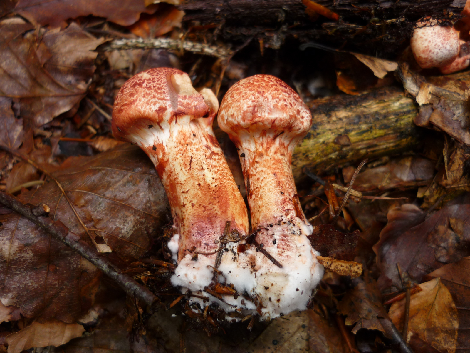 Zum Cortinarius bolaris auf Holz - viele Mykorrhizapilze wachsen gerne auf (morschem) Holz. In das morsche Holz dringen auch gerne die Wurzeln der lebenden Bäume ein, d.h. man findet teils auch im Holz Mykorrhizen. Zudem gibt es Mykorrhizapilze, die ganz gerne an Holz wachsen wie den Kahlen Krempling (aber natürlich auch am Boden).