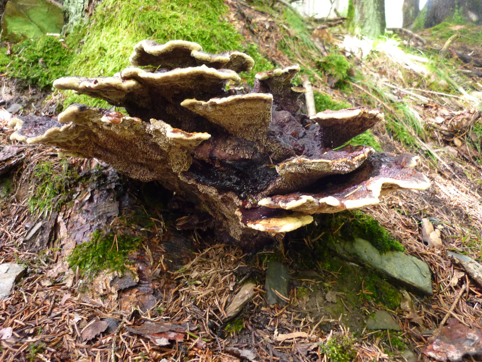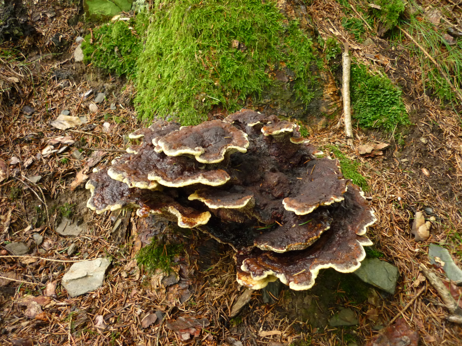 Aber mit Deinem Tipp hast Du mich veranlasst, mich mit den Wurzelschwämmen zu befassen. Das war ziemlich interessant. Braunporlinge hatte ich die letzten Wochen schon recht viele gefunden, aber noch keinen, der wie ein Blumenstrauß aufgefächert war. Daher hatte ich auch keinen Nadelholzbraunporling vermutet.