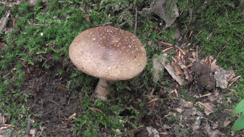 Nach einigem Blättern und Lesen habe ich ihn als Perlpilz bestimmt. Erst dachte ich auch an Pantherpilz, aber die Form und Struktur des Velums (dünn, lappig, eingerissen, gerieft) und der knolligen Basis (ohne abgesetzte Wulste) sprach m.E. dagegen.