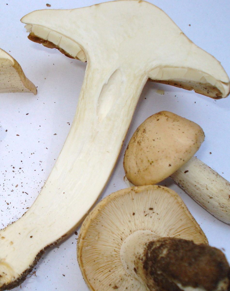 Und dann gibt es noch diese Exemplare die einen außergewöhnlichen verwachsenen Stiel haben. Deswegen dachte ich, man könnte sie leichter identifizieren aber in unseren Pilzbüchern gibt es keinen guten Hinweis. Leider hat auch er nicht ausgesport so dass zur Sporenfarbe nichts zu sagen ist. Am Boden gefunden, Buche, Eichen, Weiden.