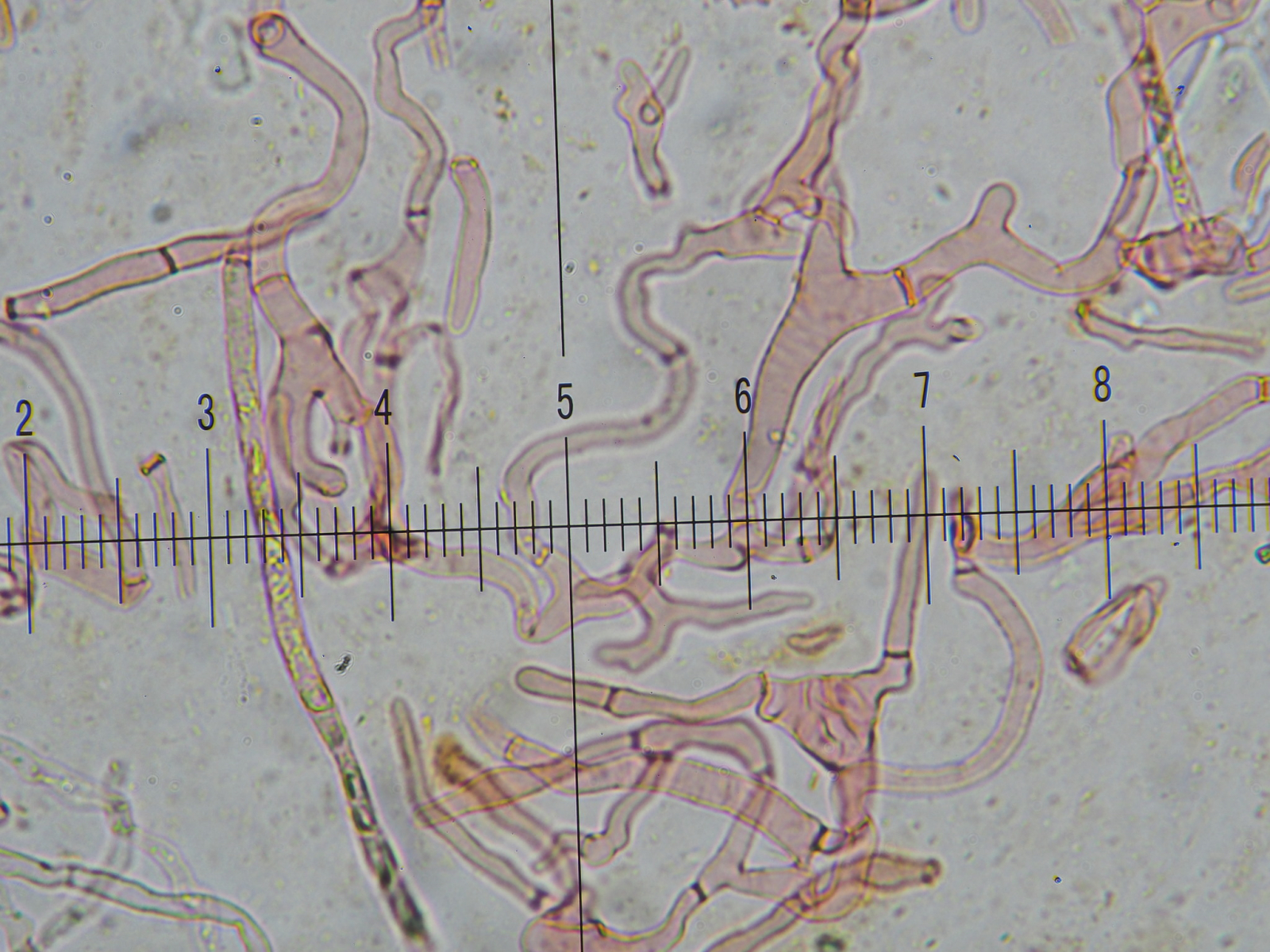 Es waren nur keulige, alles? unseptierte, teils lange Dermatozystiden auffindbar.