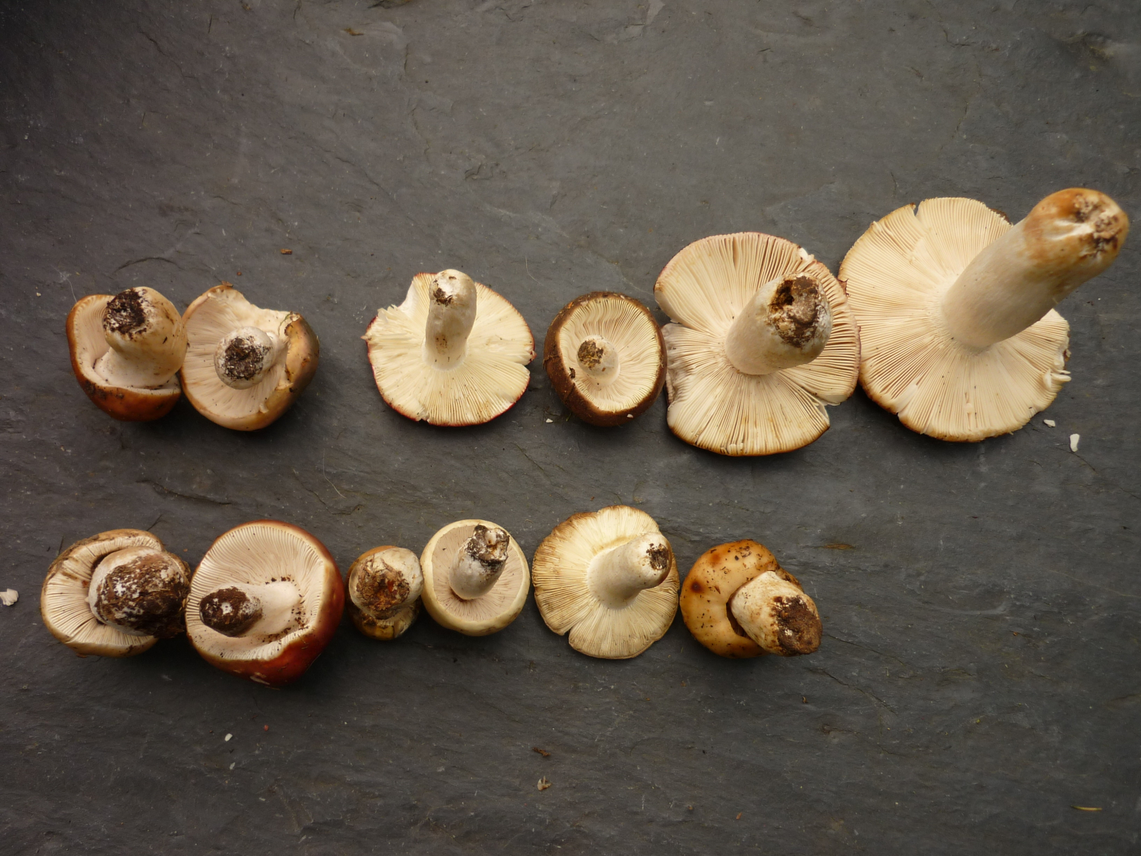 der letzte einzelne ist Russula delica, Gemeiner Weißtäubling.