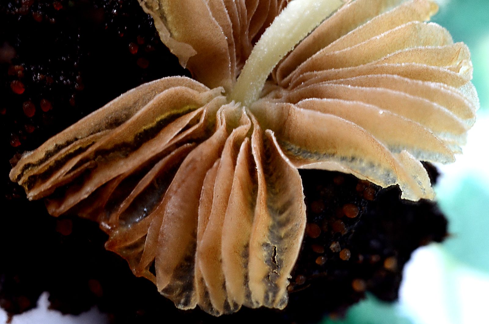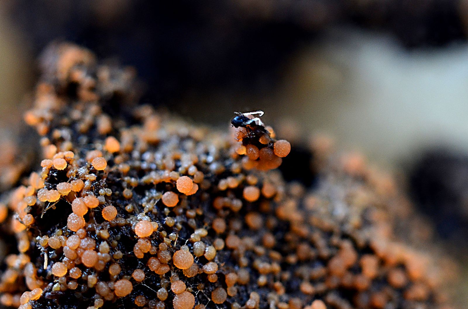 Die Zersetzung des Substrates ist bereits weit fortgeschritten, wovon unzählige Kleinstlebewesen zeugen.