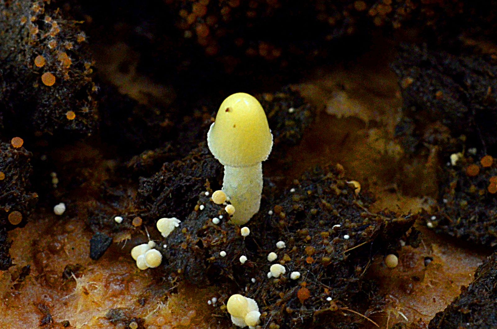 Ich konnte übrigens mit Saccobolus citrinus (17.08.) noch einen winzigen gelben Becherling nachweisen, und mit Podospora decipiens (20.08.) schließlich auch noch einen Pyrenomyceten, also einen sogenannten Kernpilz. Danach war Schluss.