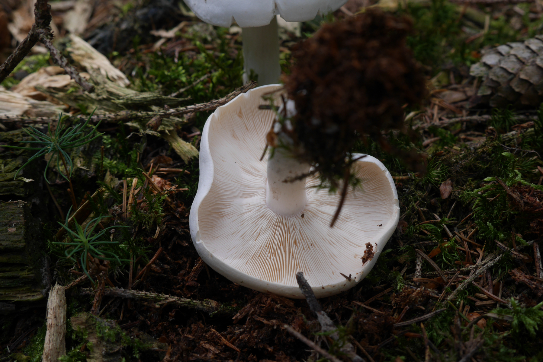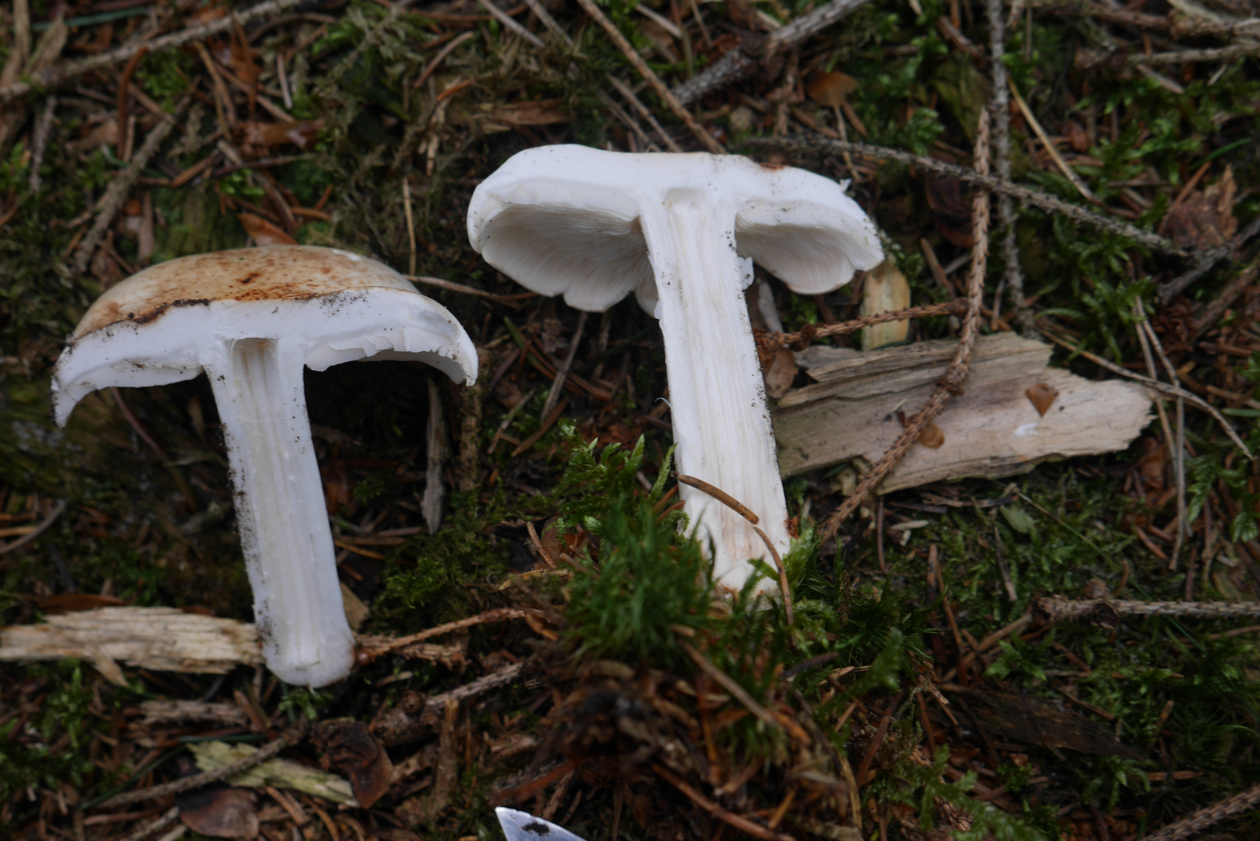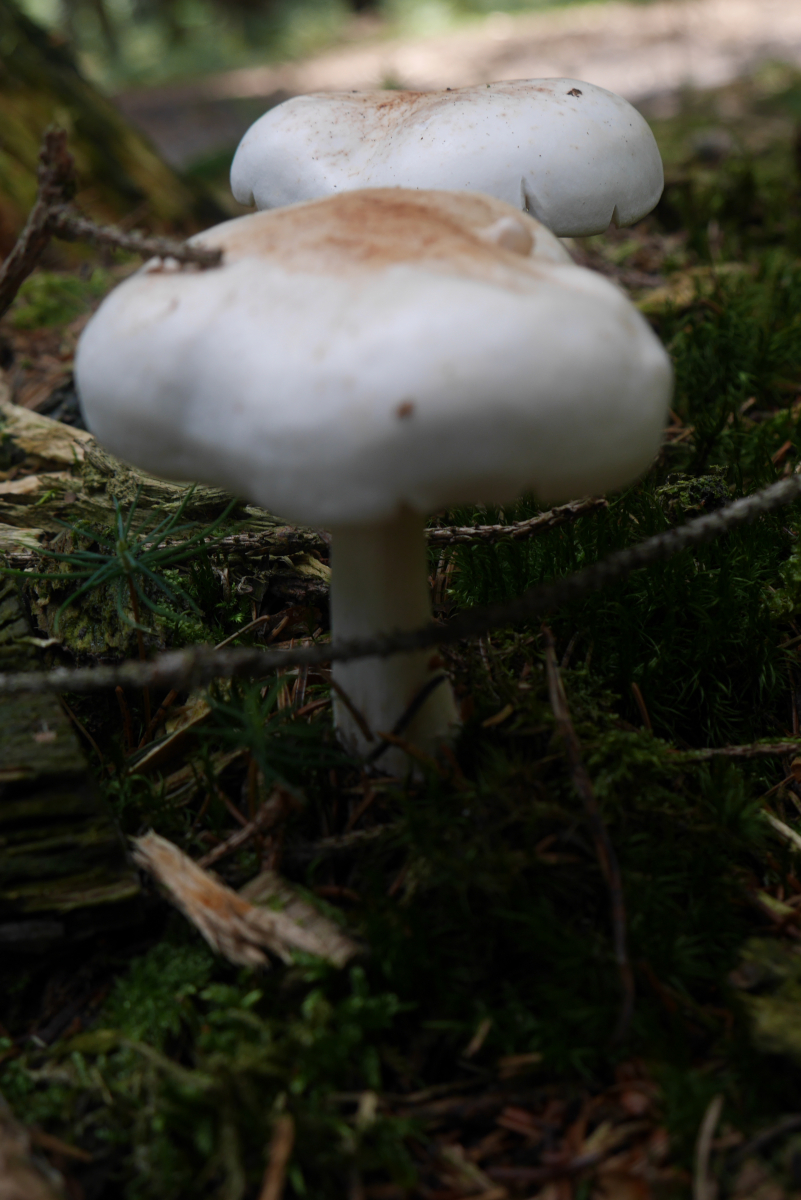vergleiche mit dem Gefleckten Rübling (Rhodocollybia maculata).