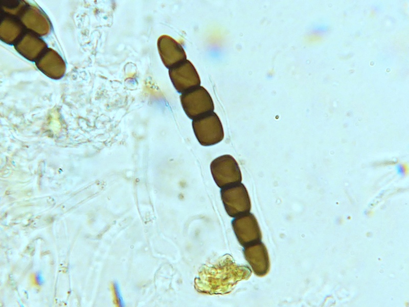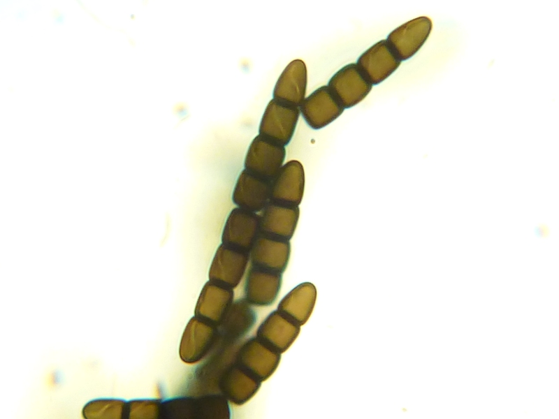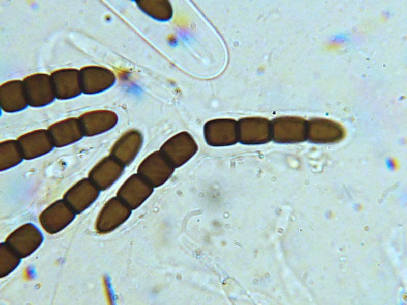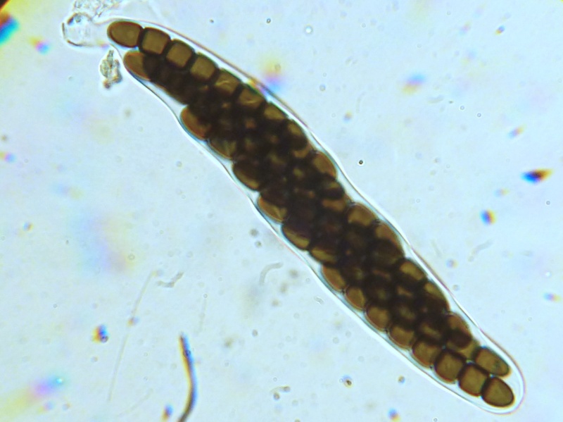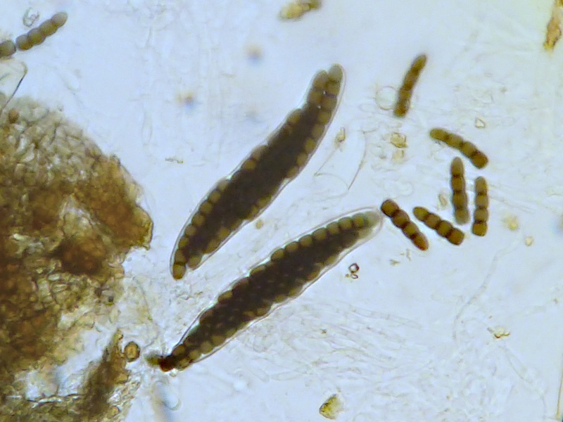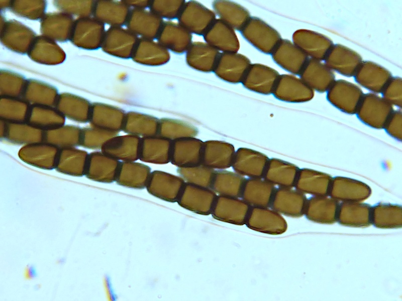 Sporenmaße um 47,5 x 6,5 µm, 8 Zellen, diagonale Keimspalte mit Knick.