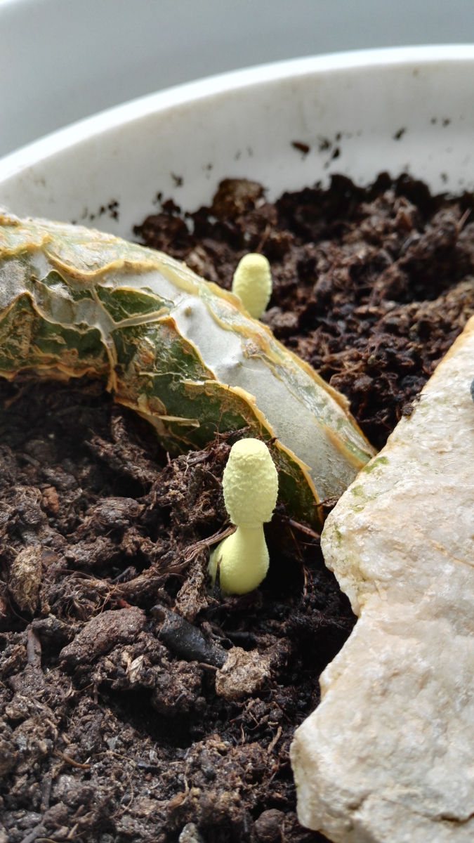 aus einem Zimmerpflanzentopf von mir wachsen grad 2 Fruchtkörper. Kann jemand diesen Pilz bestimmen? Danke im voraus