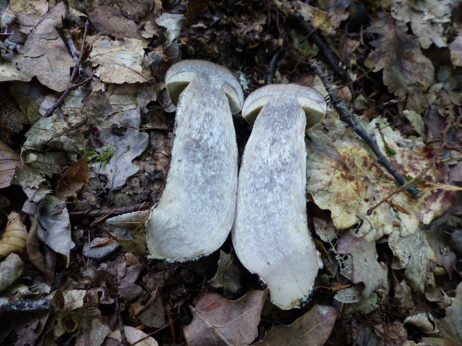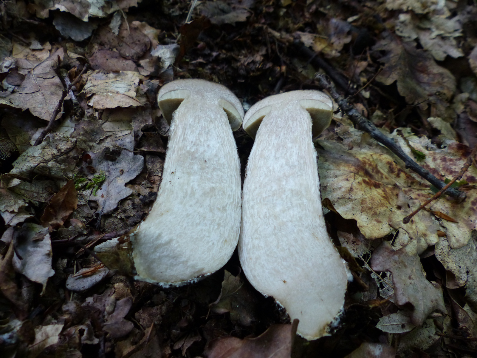 Stiel: relativ dick, rauh, schwarze Schuppen auf dem Stiel, Durchmesser etwa 2 cm, innen fest und fleischig, nach Durchschnitt