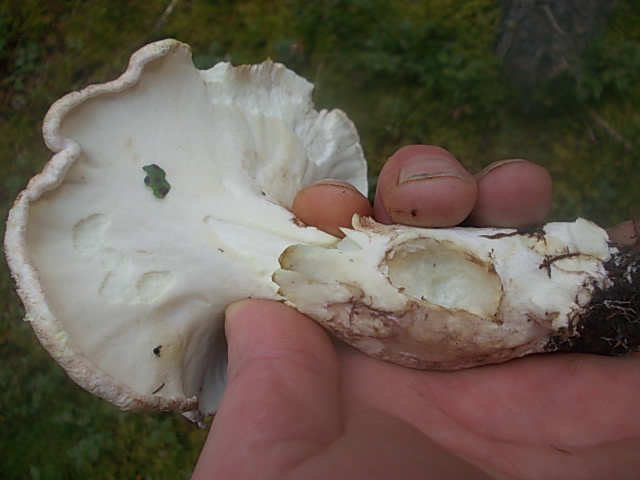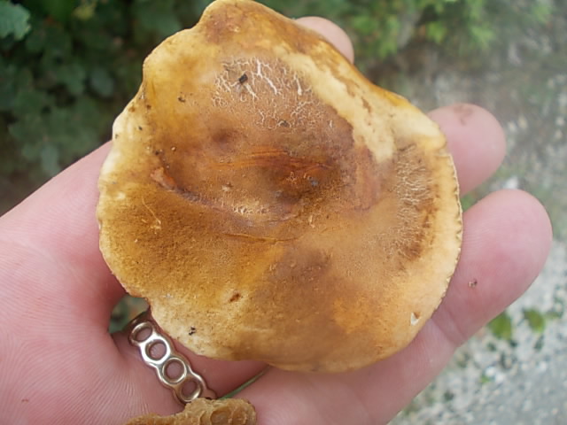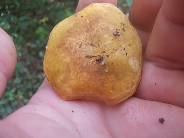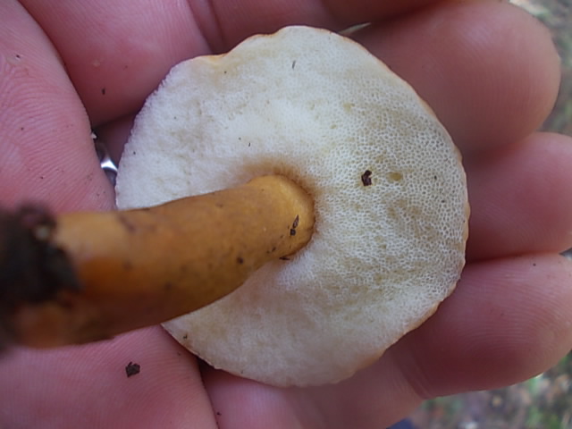 heute habe ich einen mir unbekannten Röhrling mit fast weißem Futter gefunden. Er stand an einem Hohlweg bei einer Buche. Auf Druck und kurz nach dem Zerschneiden gilbte er etwas. Geruch unauffällig. Geschmack- naja. Hab leider nur Handyfotos gemacht: